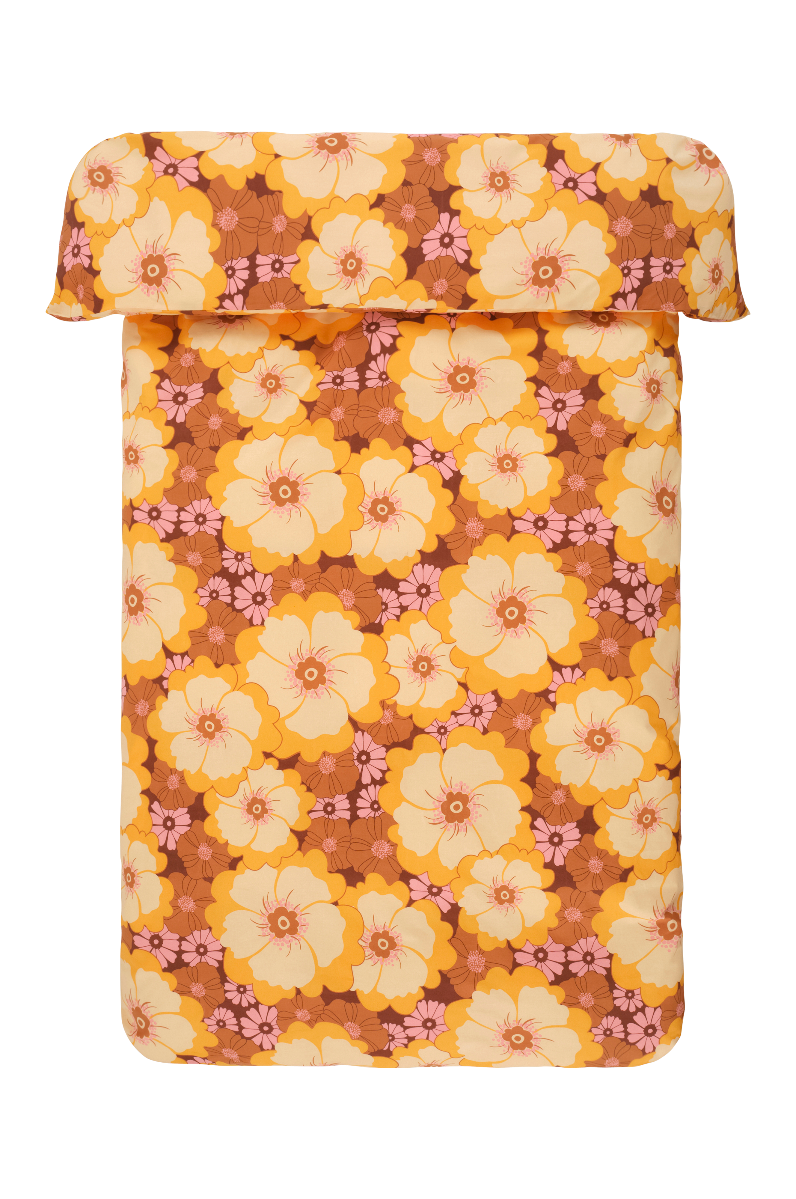 FRIDA dynebetræk fra Maria Carlberg giver et retropræg med sit blomsterdesign. Det er fremstillet af økologisk bomuldspercale og kombinerer komfort og stil. Pigmenttryk sikrer levende farver, mens skjulte trykknapper giver en elegant finish for nem brug.