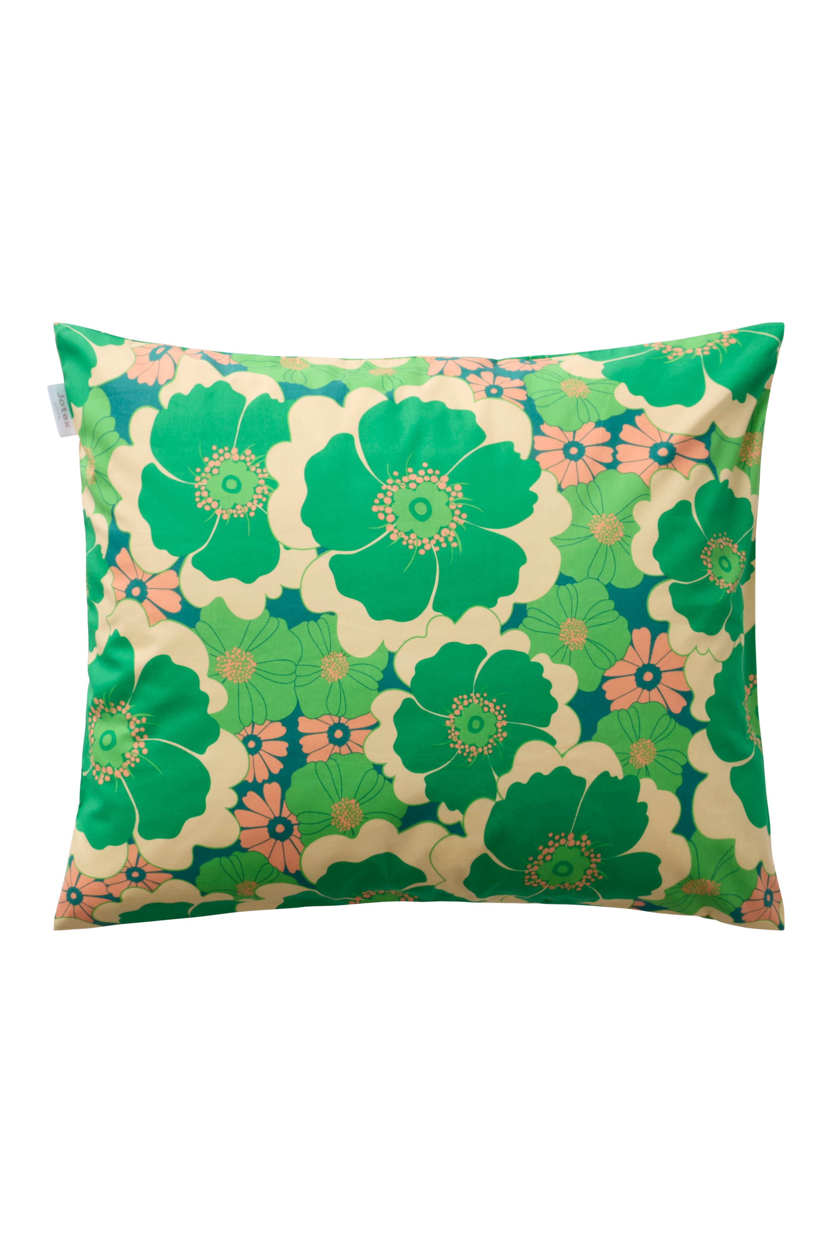 FRIDA-pudebetrækket har et retroblomstermønster af Maria Carlberg, fremstillet af bomuldspercale og pigmenttrykt. Dette design giver et nostalgisk præg til ethvert rum og tilføjer et frisk touch, der forbedrer moderne interiør.