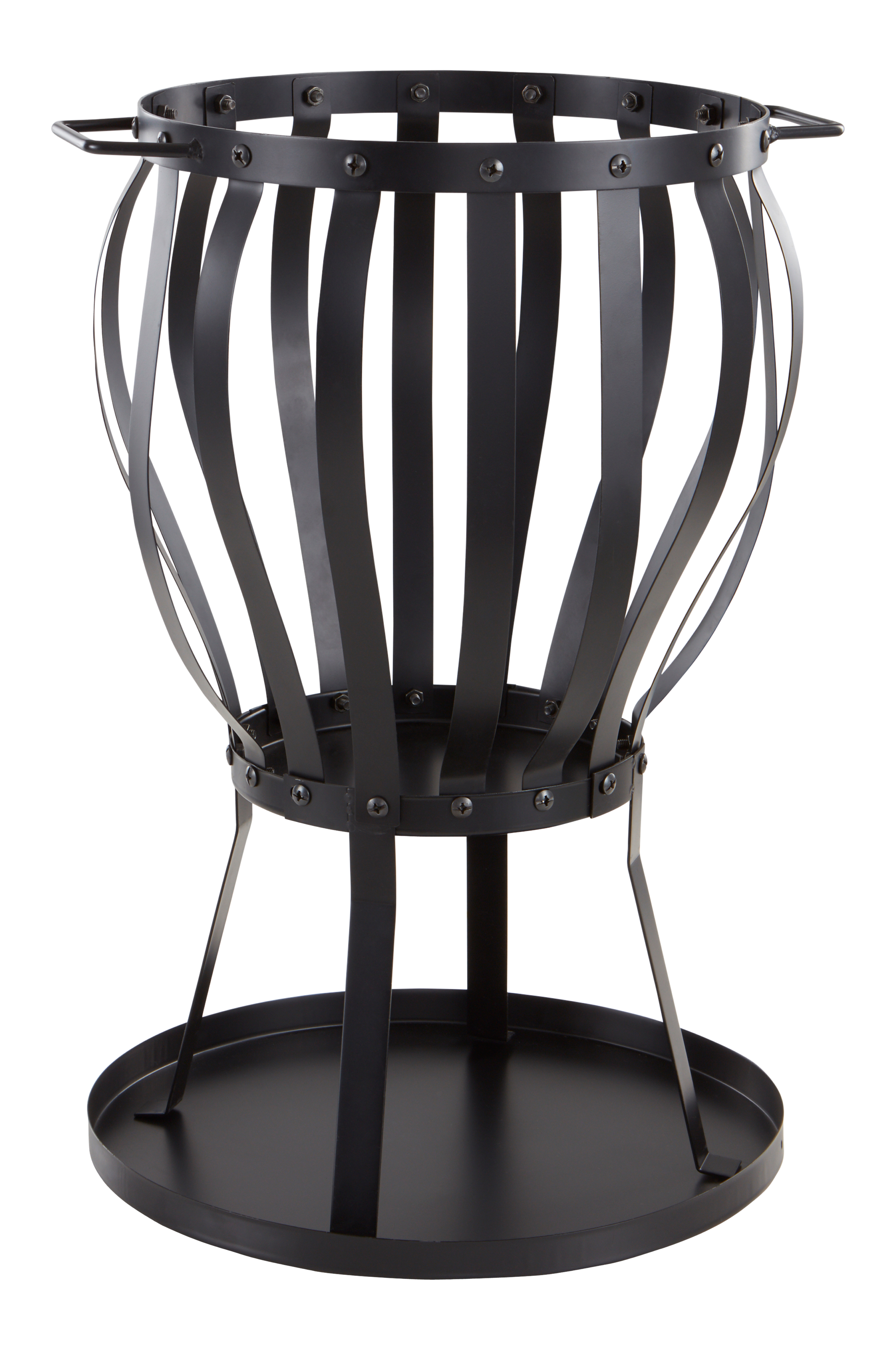 Bålkurv af stål med pulverlakeret overflade. Bålkurven er et bærbart ildsted, som du kan flytte rundt i din have, hvor du vil have et hyggeligt bål at varme dig ved eller i stedet for fakler udenfor huset, når gæsterne kommer. Du kan også grille f.eks. pølser med lange grillspyd, når ilden er blevet til gløder. Grillkurven er til udendørs brug og har en tallerken at stå på, som opsamler noget af asken. Vær forberedt på, at der kan være gnister og aske, der flyver op. Undlad at have åben ind i nærheden af noget, der kan brænde. Nogen montering kræves.