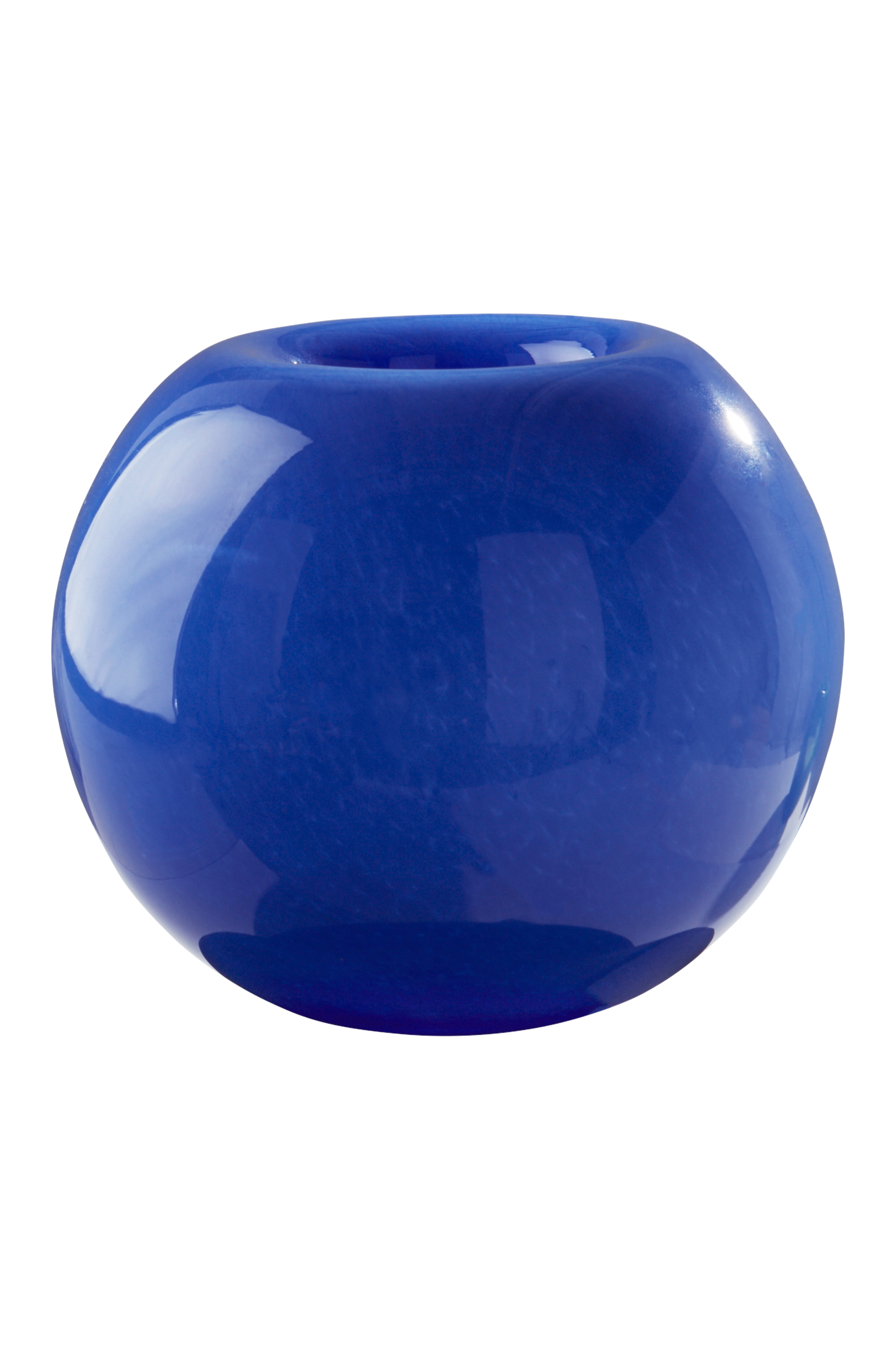 Håndlavet glasvase i klare farver. Den kuglerunde, farverige vase fremhæver det smukke i din blomsterbuket. Håndværket gør hver vase unik.