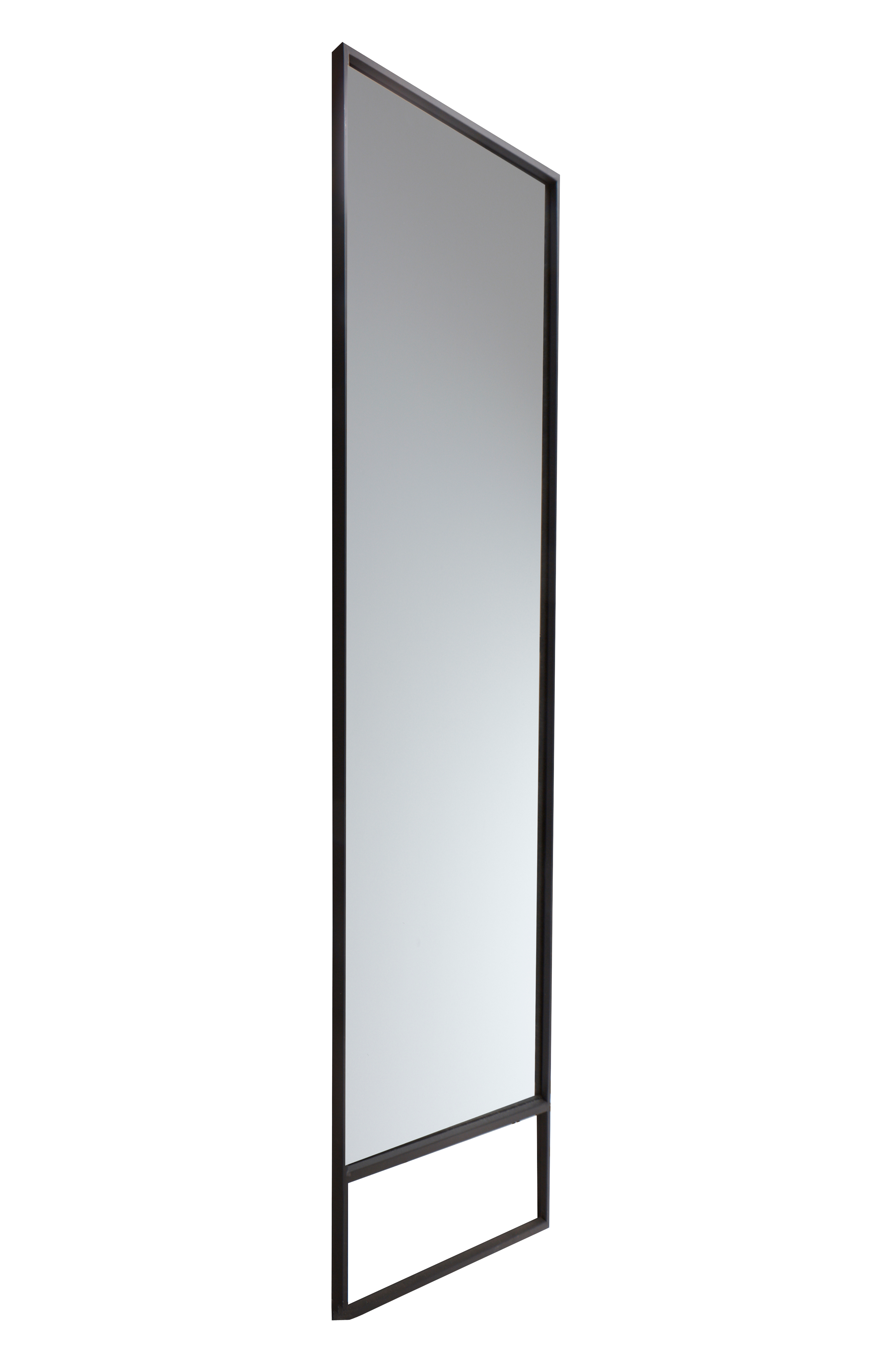 Gulvspejl med stilfuld, elegant jernramme med mat finish. Det høje, smalle spejl har to bøjler på bagsiden og kan også placeres på gulvet lænet op ad væggen. Det er rart at have et spejl derhjemme, hvor man kan se sin fulde figur, så looket føles ok fra top til tå.
