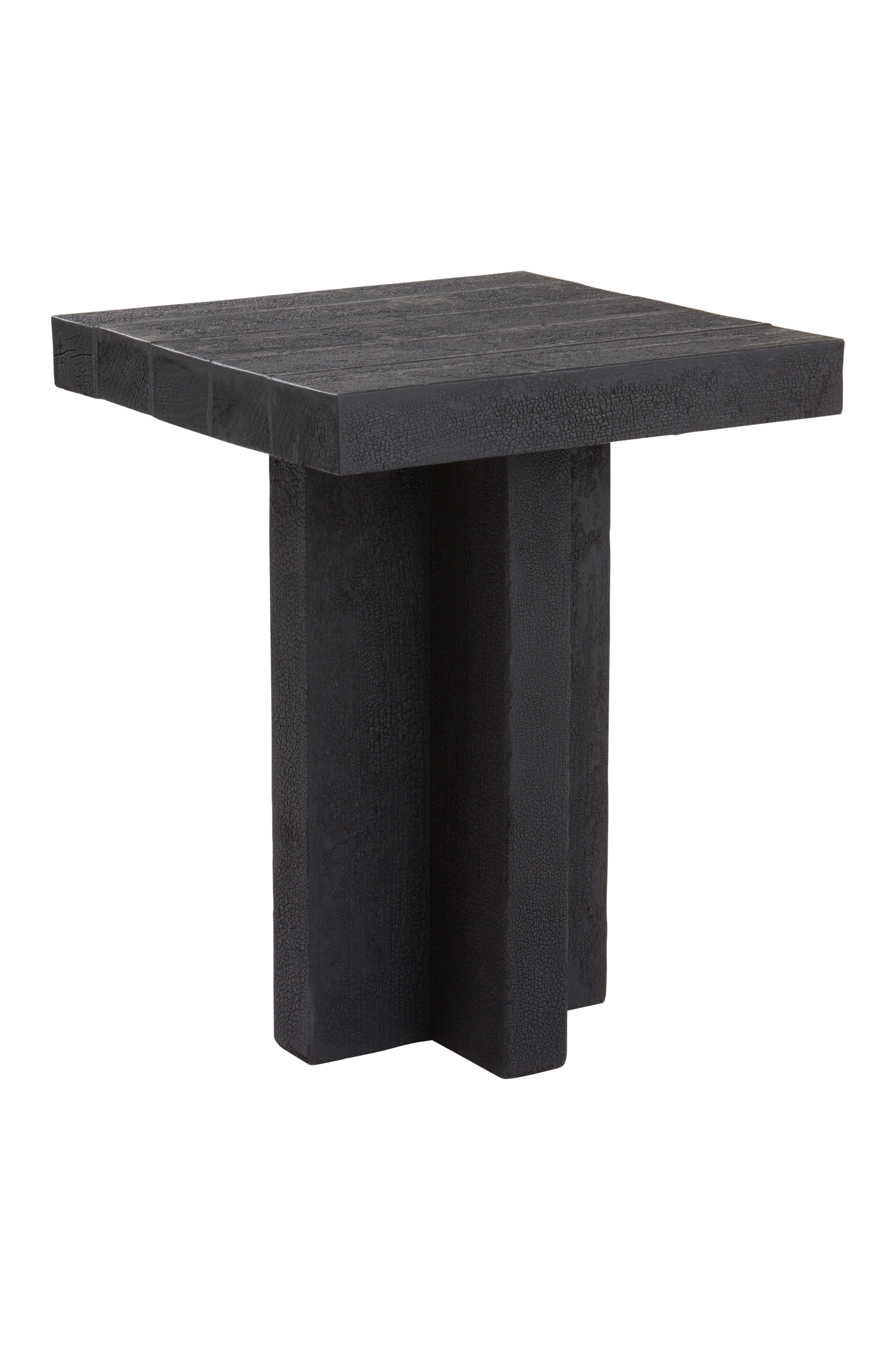 HEKLA er et lille, rustikt sidebord af massivt mangotræ med grov struktur. Overfladebehandlingen er ru og sortlakeret, hvilket giver træet et brændt look. Den kvadratiske bordplade er kraftig og søjlefoden er krydsformet. Det lille bord passer for eksempel fint ved sofaen og ved siden af sengen.