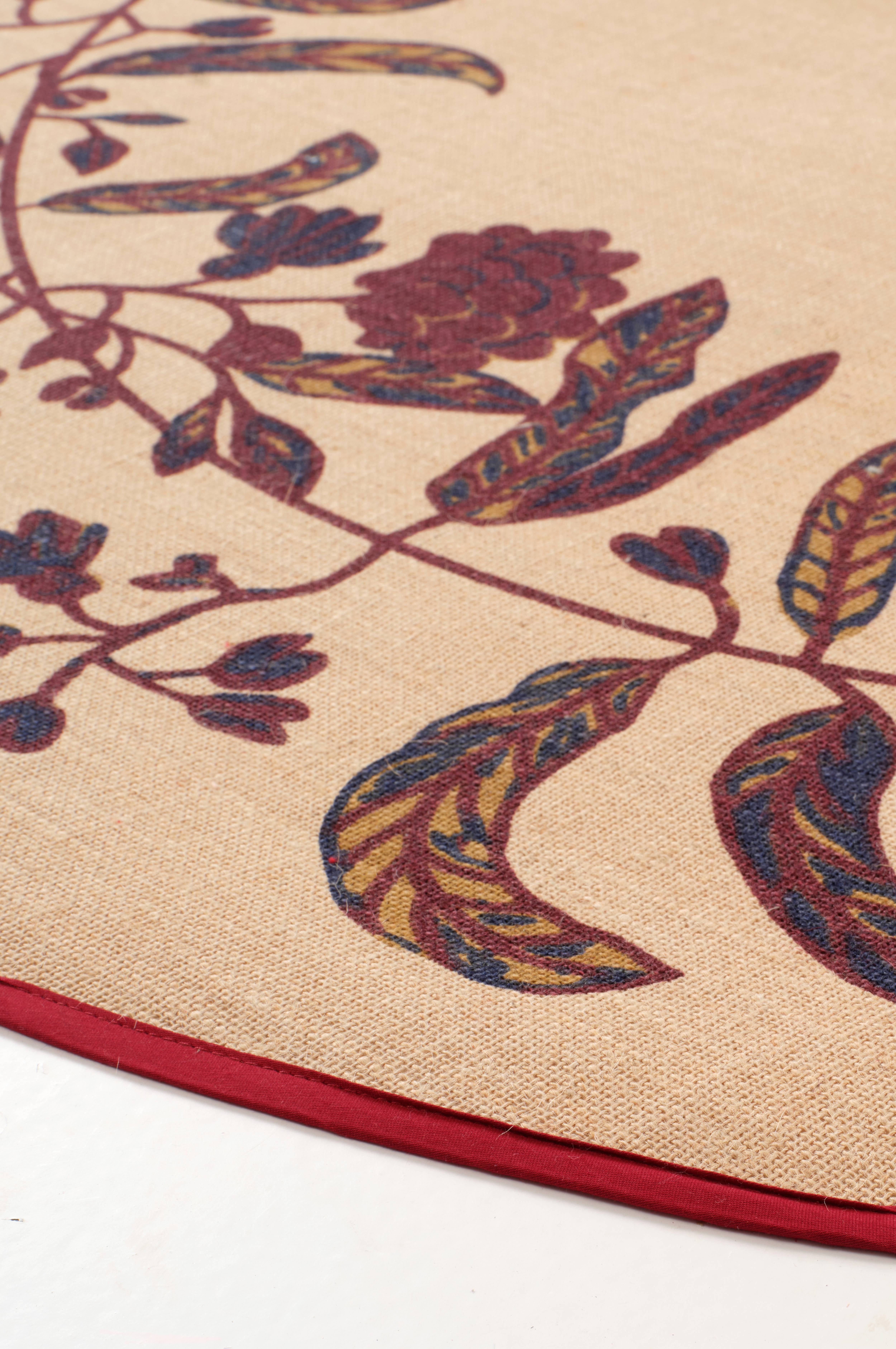 Det runde INGRID-tæppe er lavet af jute og har et skandinavisk design, der er perfekt til hyggelige omgivelser. Med lamineret bagside er det ideelt under juletræet. Kombinationen af traditionelle mønstre og naturlige materialer giver varme til festlige lejligheder. Perfekt til underspillet elegance i indretningen.