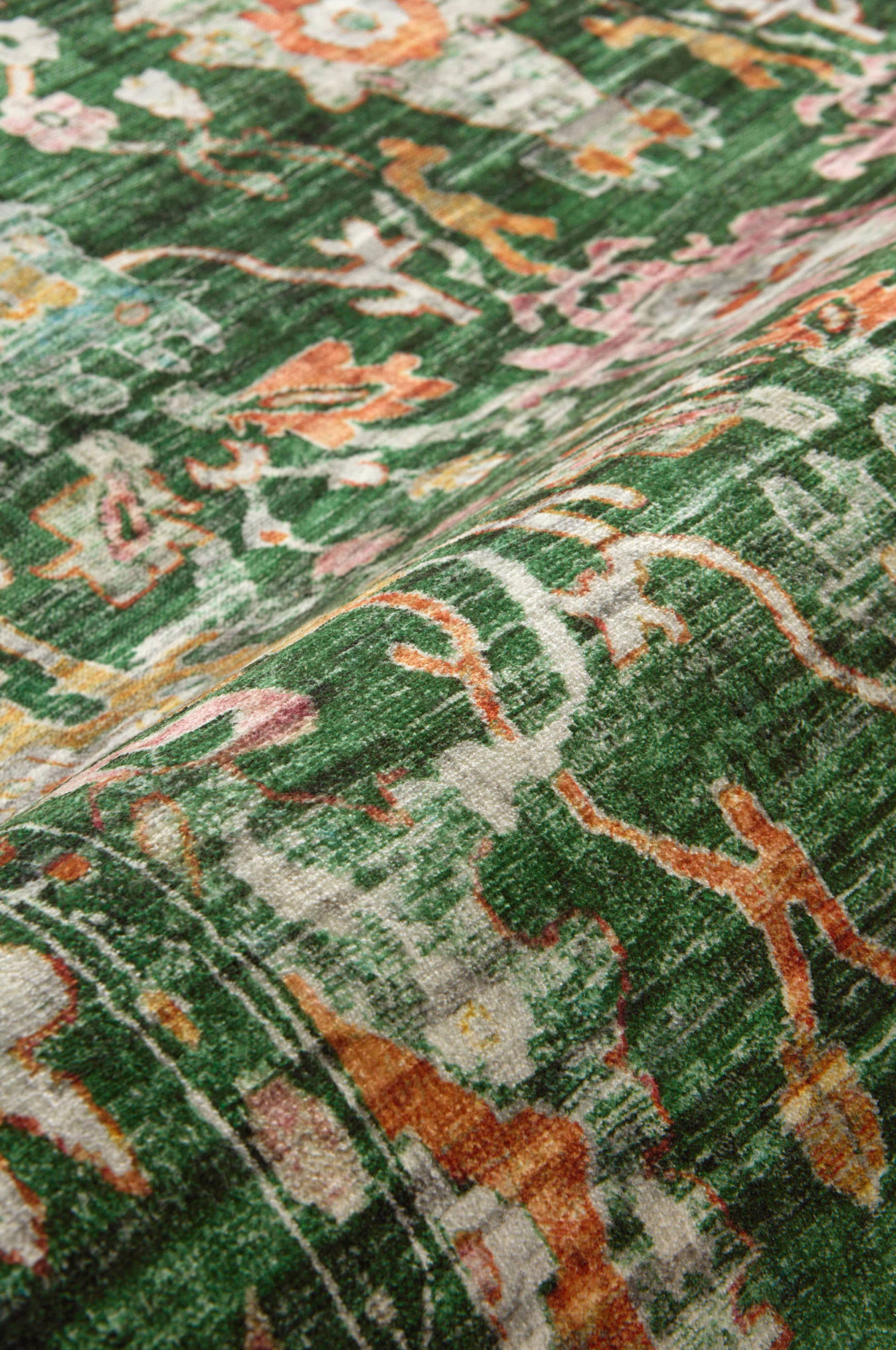IRENA-tæppet kombinerer orientalsk charme med nordisk stil og har skridsikre prikker, der giver stabilitet og blød komfort. Det tilføjer tidløs karakter og varme til ethvert rum og supplerer forskellige indretningsstile med sit indviklede design, der blander tradition og modernitet problemfrit.