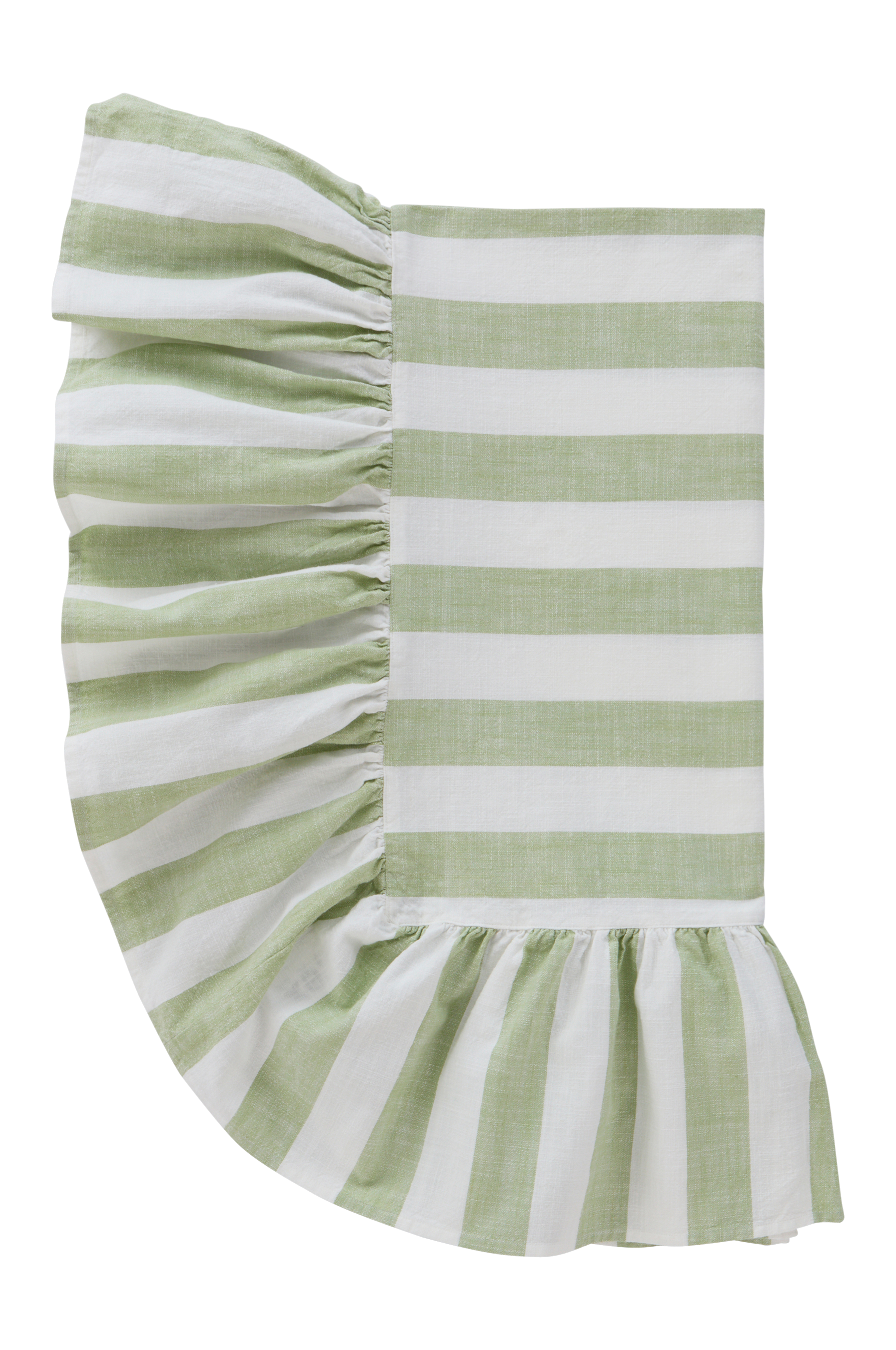 IRIS-borddugen tilfører din indretning vintagecharme med sit bomuldsstof og bløde, indbydende touch. Det garnfarvede, stribede mønster er tidløst og suppleres af udsøgte flæsedetaljer, der er perfekte til at tilføre dit rum en varm, nostalgisk charme.
