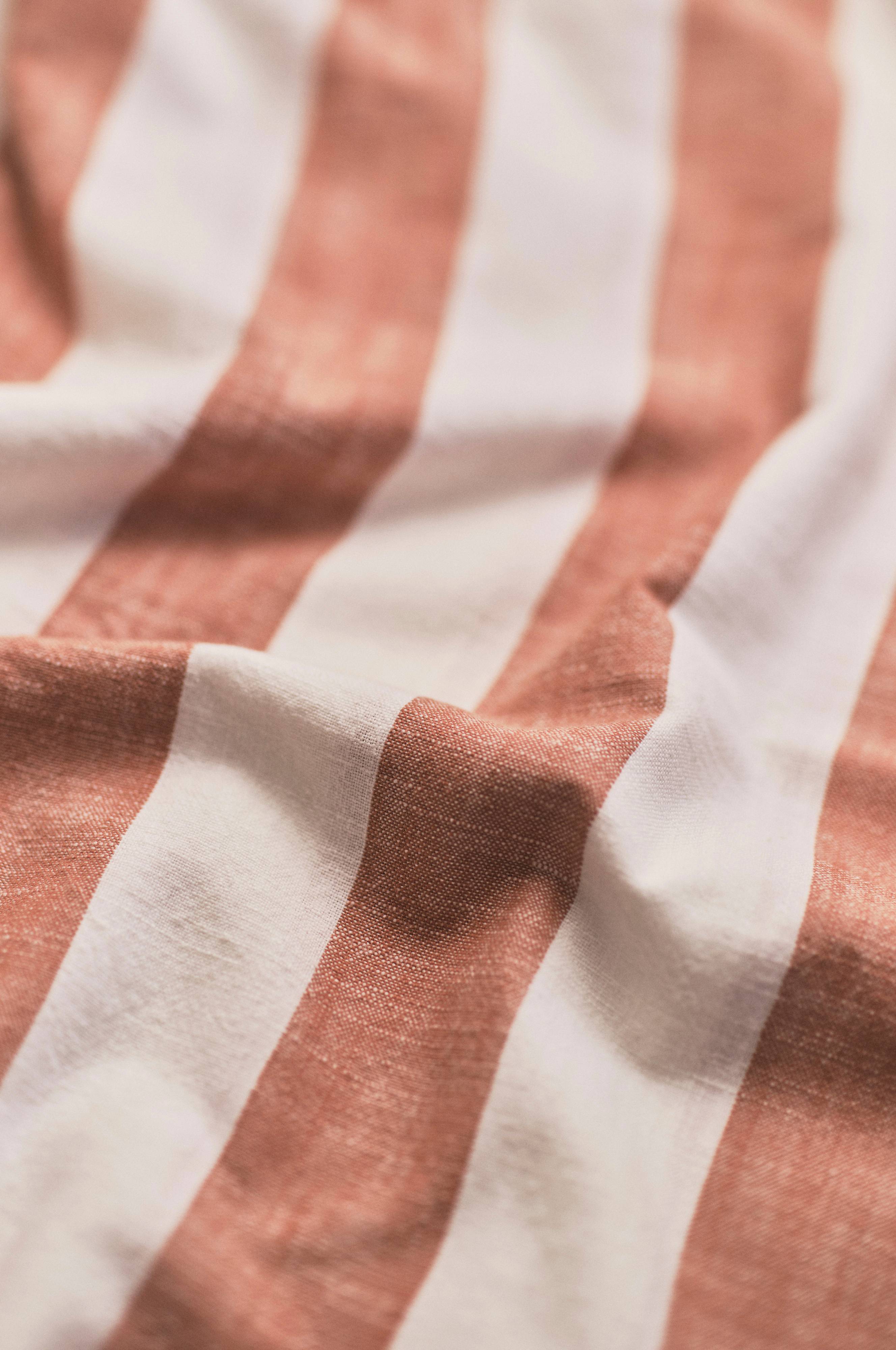 IRIS-gardinet har en vintagecharme med sine garnfarvede striber og flæsebund, fremstillet af blødt bomuldsstof. Det forbedrer stemningen i ethvert rum og passer til både traditionelle og moderne møbler, perfekt til at give dit hjem et klassisk præg.
