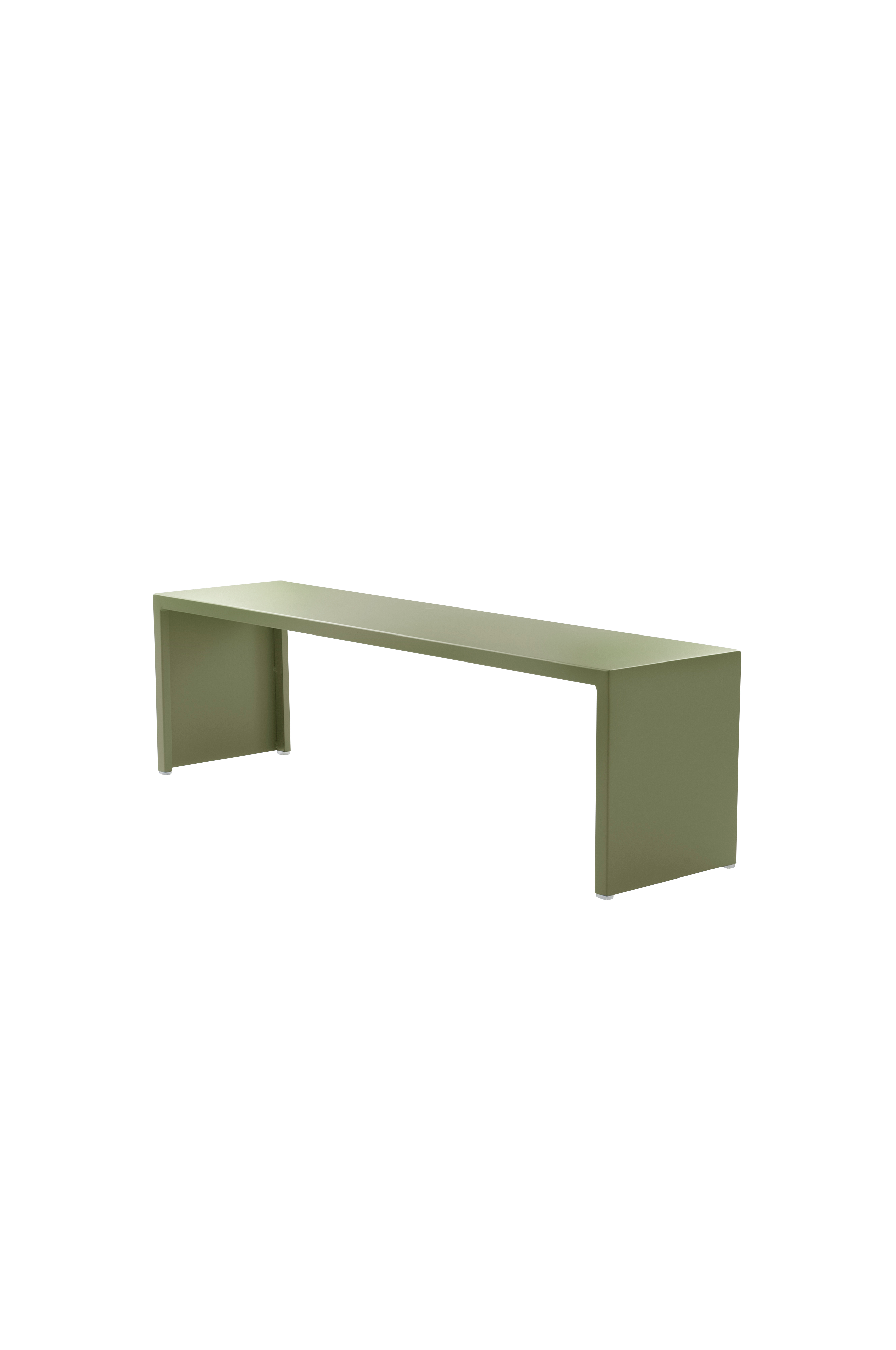 Bænk af pulverlakeret aluminium. En stilren, lige bænk som er meget anvendelig - alt fra siddeplads udenfor, i entréen og til bænk ved spisebordet på altanen. JARDIN tåler at stå udendørs, aluminium ruster ikke. Lav vægt.