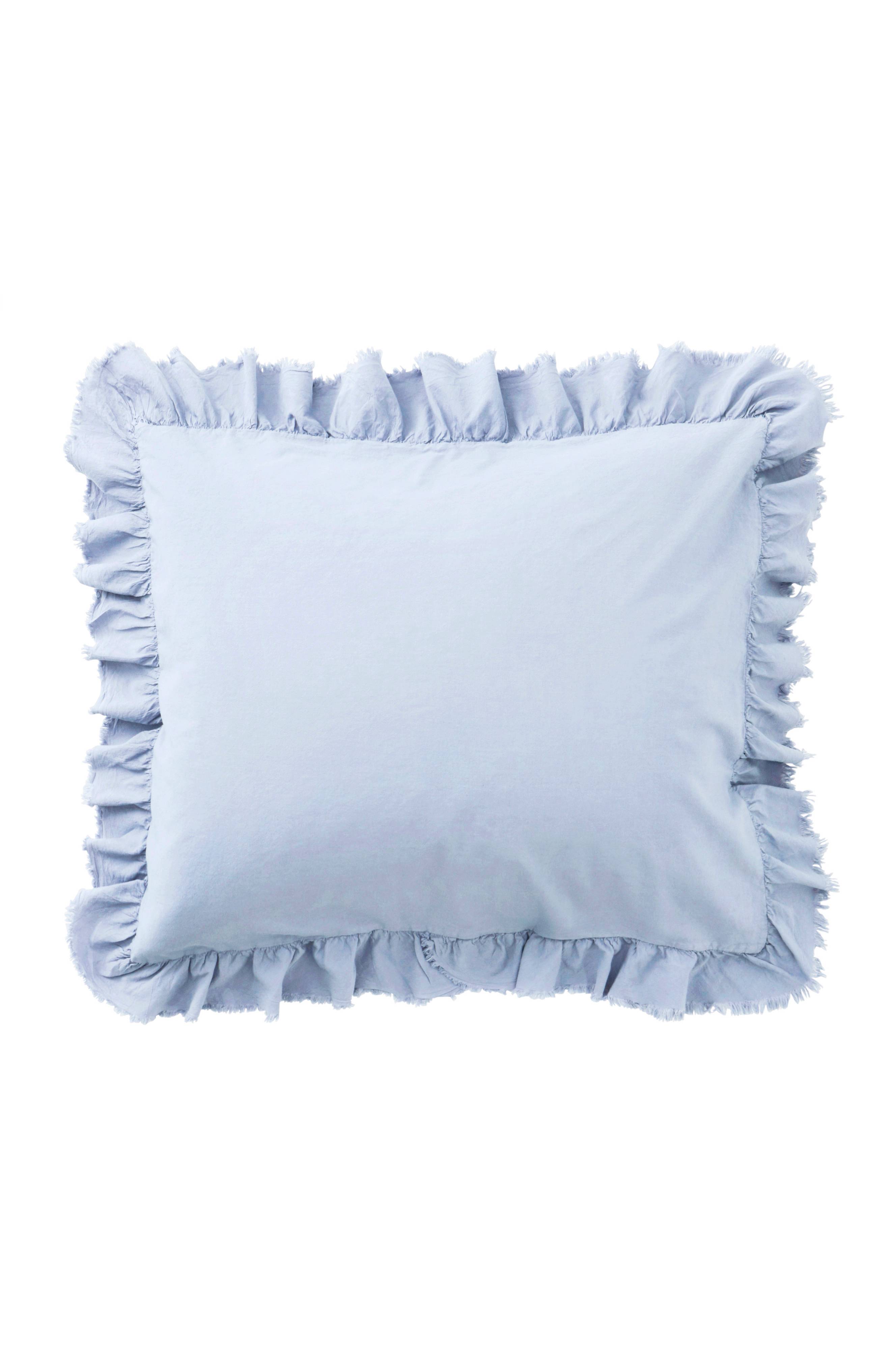 Pudebetræk af vasket bomuld med blødt udtryk. Bomuld er behageligt at sove i, opleves svalt og skønt mod huden. JINN har en let frynset flæsekant rundt om. Trådtæthed 144 TC. (Trådtætheden angiver antal tråde, Thread Count, pr. kvadrattomme i et stof. Jo højere trådtæthed desto højere kvalitet.)