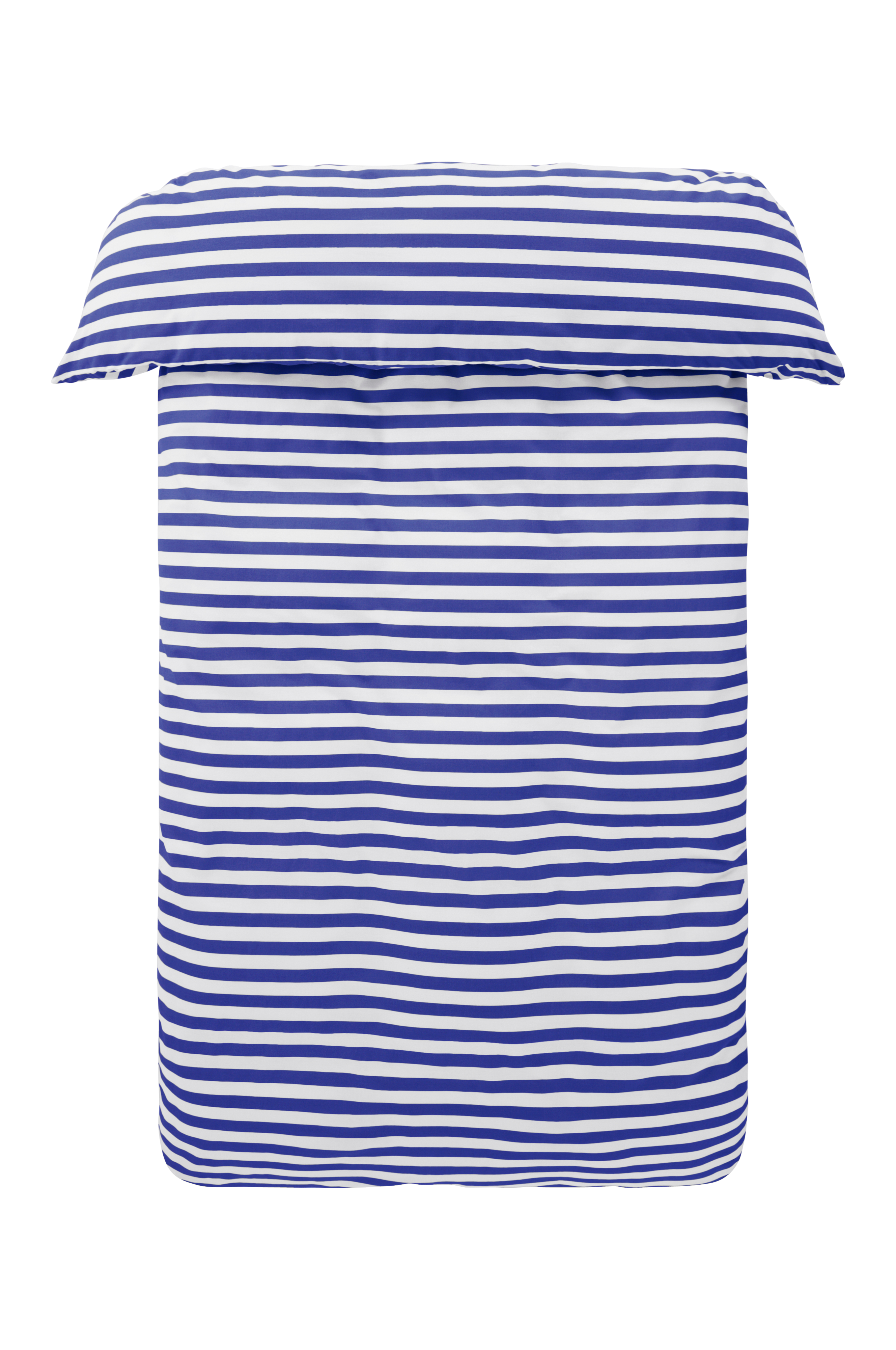 Stribet dynebetræk af bomuld. Den tværgående stribe er printet i friske, sommerlige farver på begge sider. Bomuld er en blød og behagelig kvalitet som føles kølig mod huden. Trådtæthed 144 TC. (Trådtætheden angiver antal tråde, thread count, pr. kvadrattomme i et stof. Jo højere trådtæthed desto højere kvalitet. Dog undtaget hør, der ofte væves løsere for at få det rette udtryk).