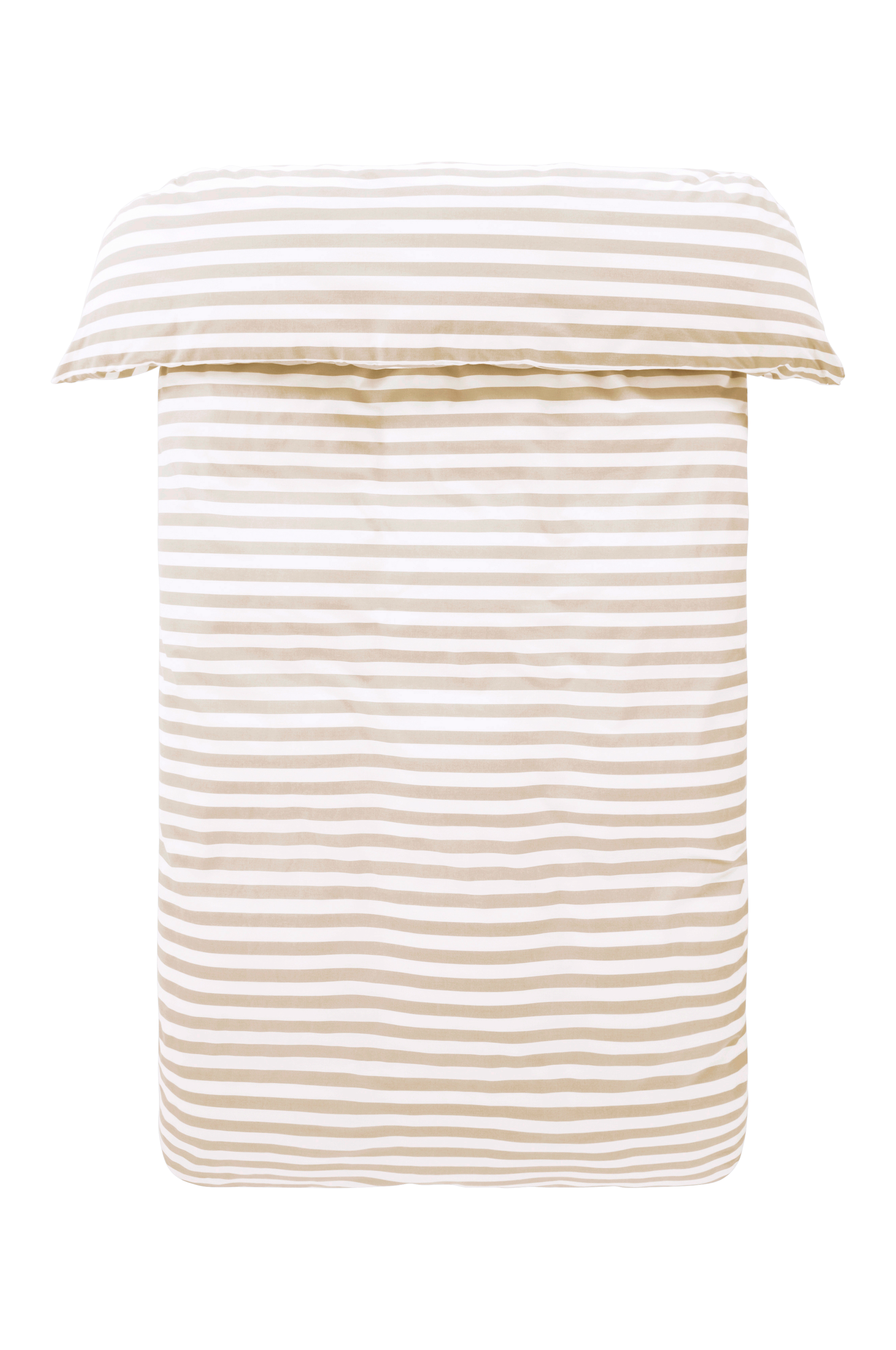 Stribet dynebetræk af bomuld. Den tværgående stribe er printet i friske, sommerlige farver på begge sider. Bomuld er en blød og behagelig kvalitet som føles kølig mod huden. Trådtæthed 144 TC. (Trådtætheden angiver antal tråde, thread count, pr. kvadrattomme i et stof. Jo højere trådtæthed desto højere kvalitet. Dog undtaget hør, der ofte væves løsere for at få det rette udtryk).