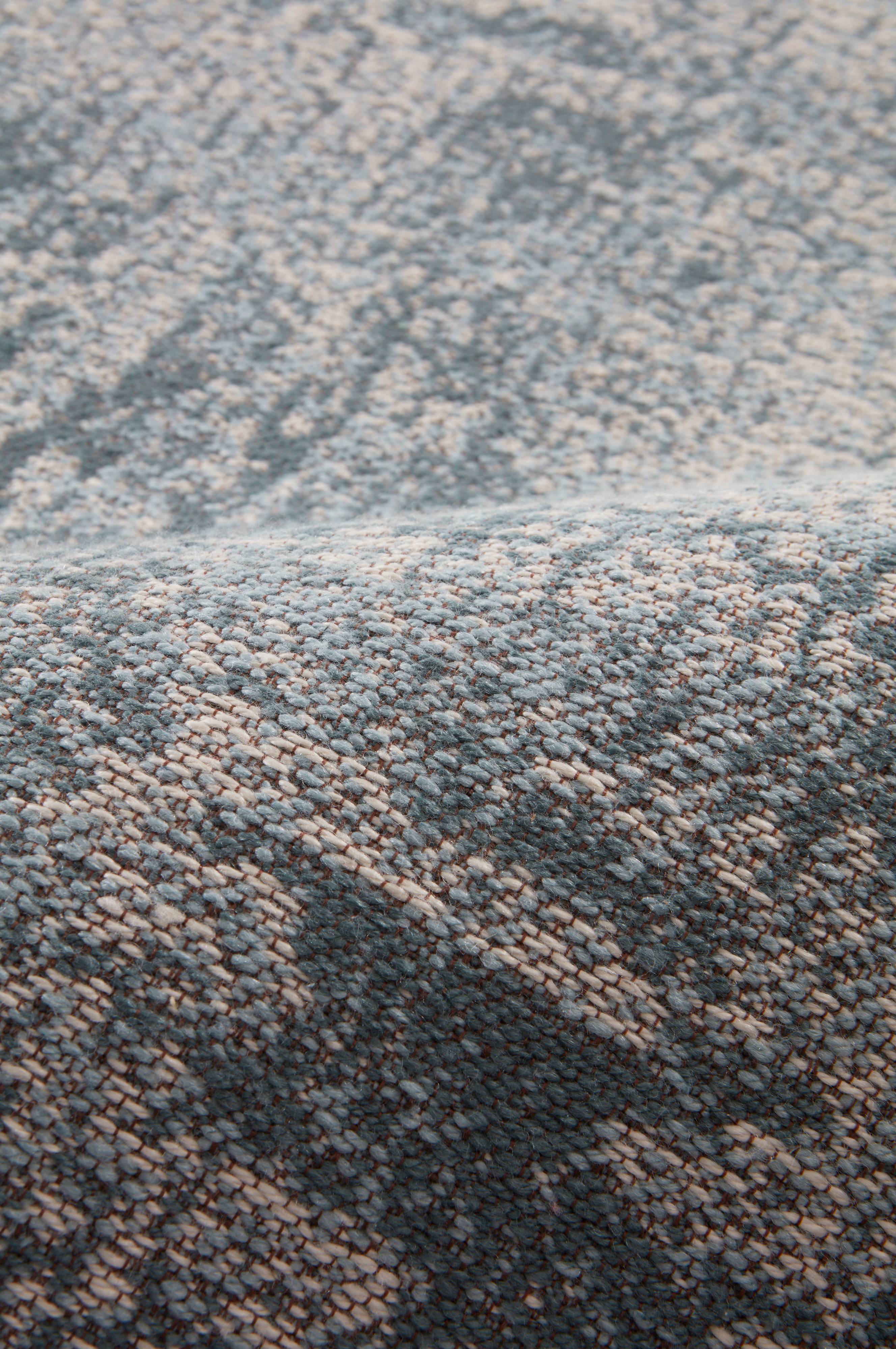 Glatvævet tæppe med fantastisk, abstrakt mønster. Gulvtæppet er fremstillet af genindvundet polyester. Det er behageligt at gå på og det er samtidigt meget robust takket være både mønster og materiale. Hvis der sker en ulykke, er tæppet meget nemt at tørre af. Tykkelse 1,8 cm. 3000 g/m².