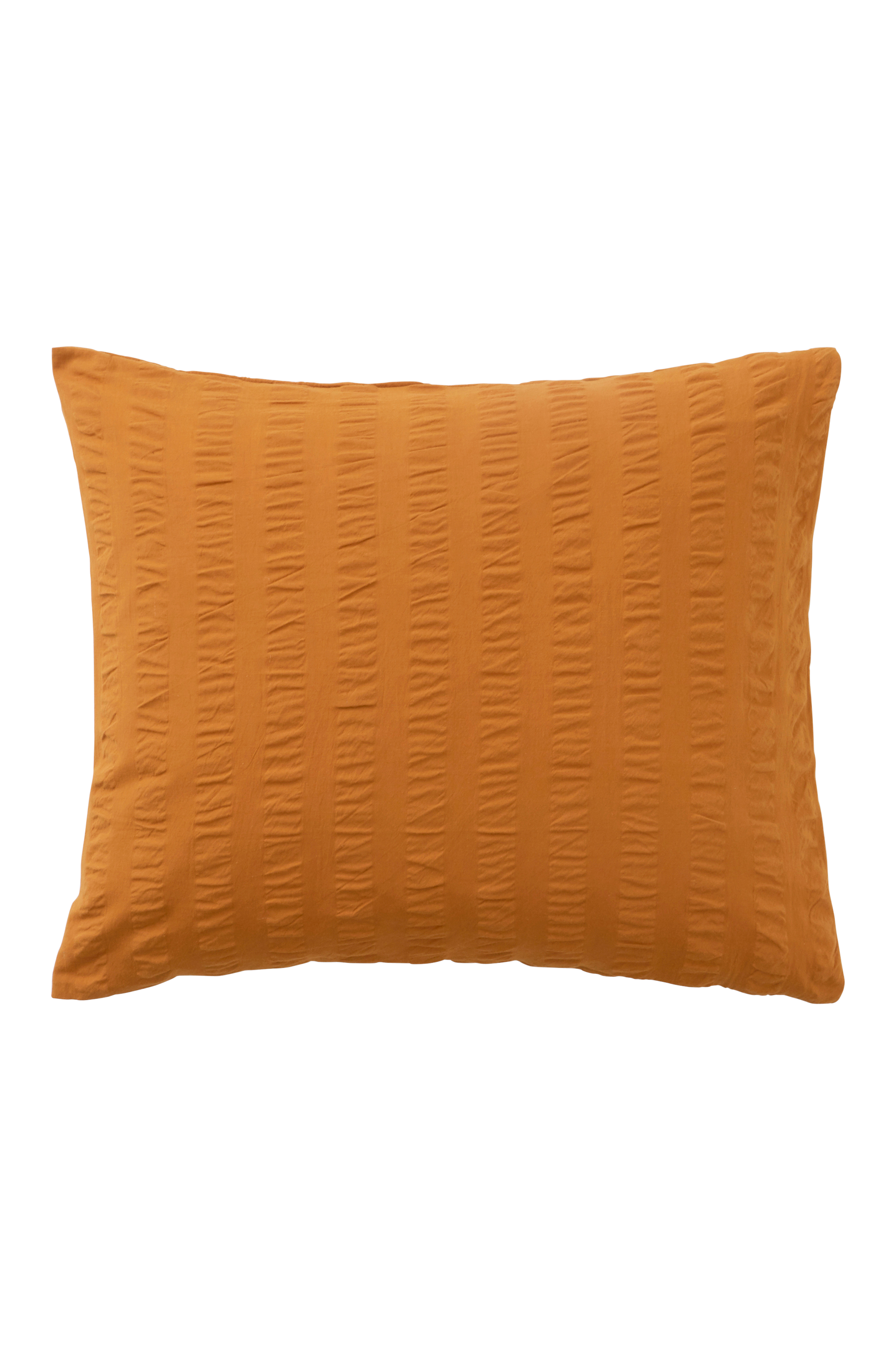 Pudebetræk i skøn bæk og bølge af certificeret, økologisk bomuld. Bæk og bølge er en luftig kvalitet og stoffets boblestruktur føles svalt og behageligt. Serien KIM er ensfarvet og samtidigt stribet. Hver anden stribe er glat, vævet stof og hver anden stribe er i bæk og bølge. Stoffet er garnfarvet og vasket for at få et blødere udtryk. Trådtæthed på 120 tc. (Trådtætheden angiver antal tråde, Thread Counts, pr. kvadrattomme i et stof. Jo højere trådtæthed desto højere kvalitet.)