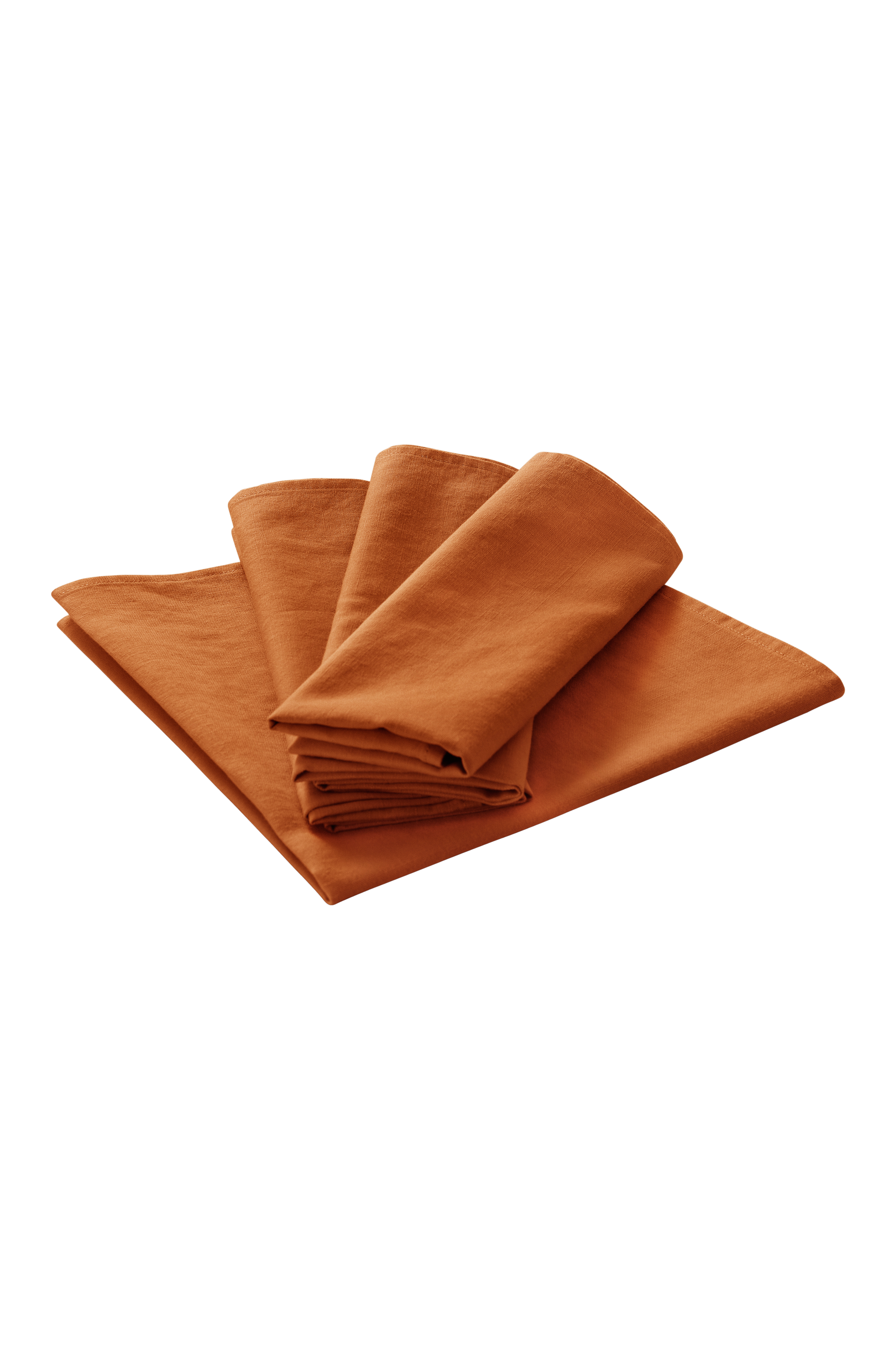4-pak servietter i en fin hørblanding, hvor hør er blandet med bomuld. Blandingen af bomuld og hør giver en plejevenlig kvalitet med fordelene ved både bomuld og hør. Hørren giver en lidt fastere struktur, og sammen med den bløde bomuld bliver stoffet fleksibelt. De ensfarvede KIT-servietter er en god base for din borddækning. Ensfarvede er nemme at matche og passer lige så godt sammen med ensfarvede tekstiler som med mønstrede.