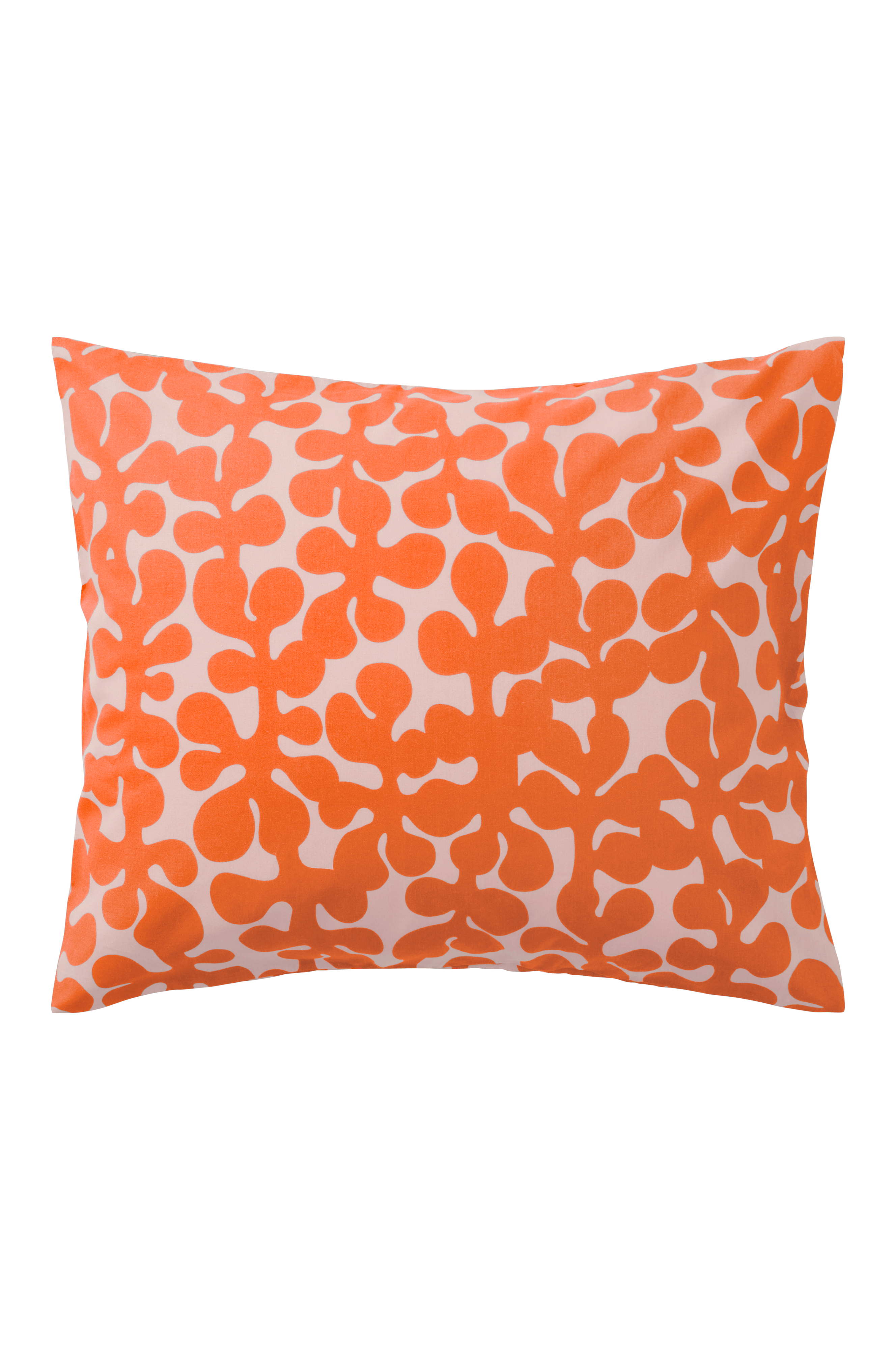 Pudebetræk designet af Maria Carlberg. Et levende, mønstret pudebetræk i økologisk bomuld med et retroinspireret mønster til et drømmende soveværelse. Farverig fornøjelse.
