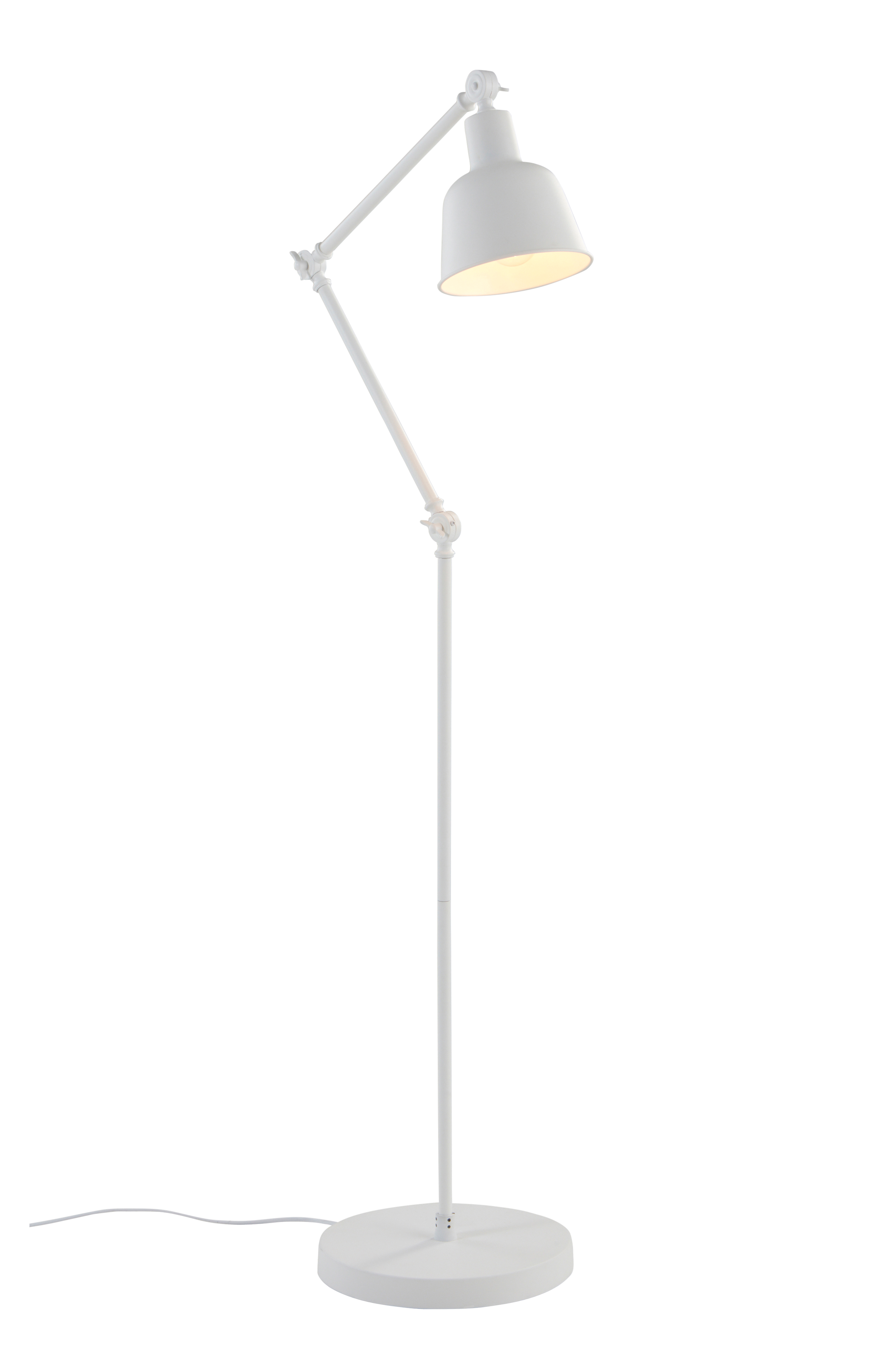 Moderne gulvlampe af metal. Justerbar i tre led, så lyset kan drejes efter ønske og smag. Ledningslængde 1,8 m.