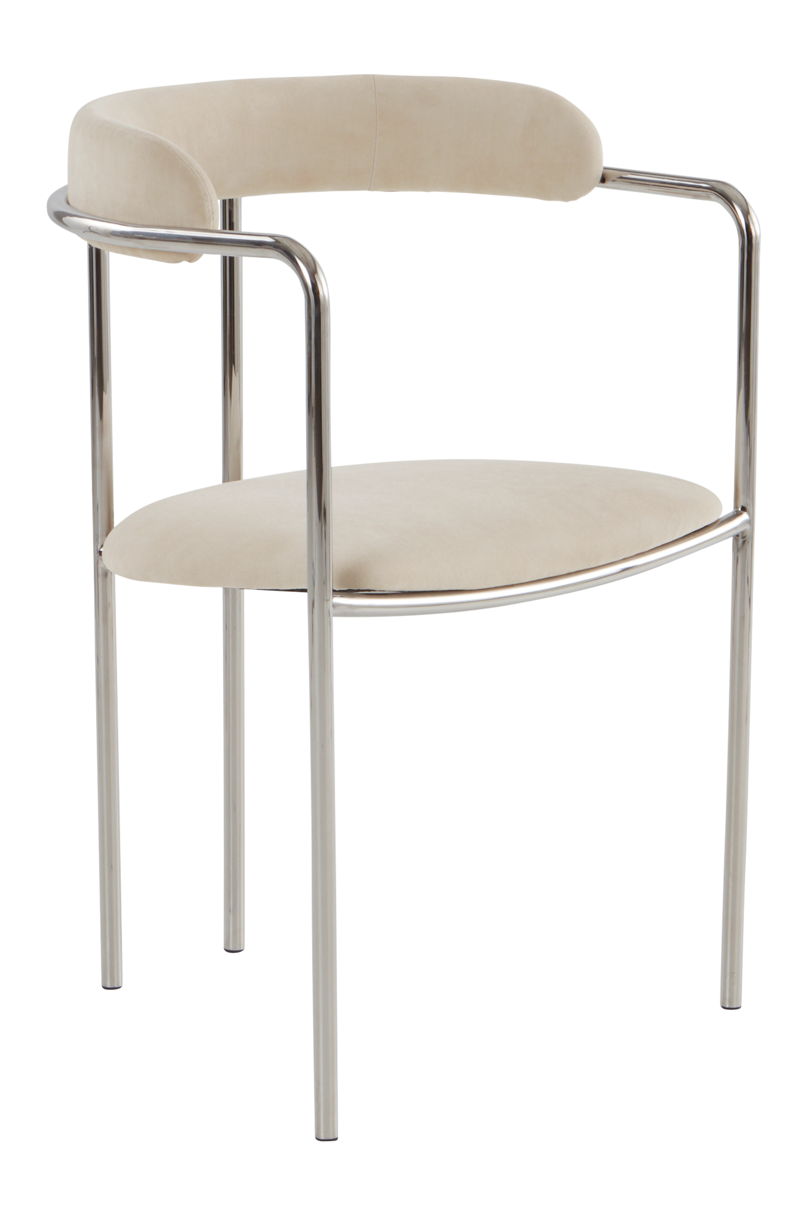 MARYLAND er en elegant og tidløs stol med armlæn, en elegant kombination af forkromet stål og blødt chenillestof. Armstolens sæde og nette ryglæn har en stel af MDF som er behageligt blødt polstret og har fint chenillebetræk. MARYLAND er en stol som du med fordel kan placere som dekoration på et bart sted, i entreen eller i din dagligstue. Den gør sig fint i soveværelset. At møblere med MARYLAND omkring et matchende spisebord giver dig en sober og elegant spisestue, hvor lange lækre middage med vennerne kan nydes.
