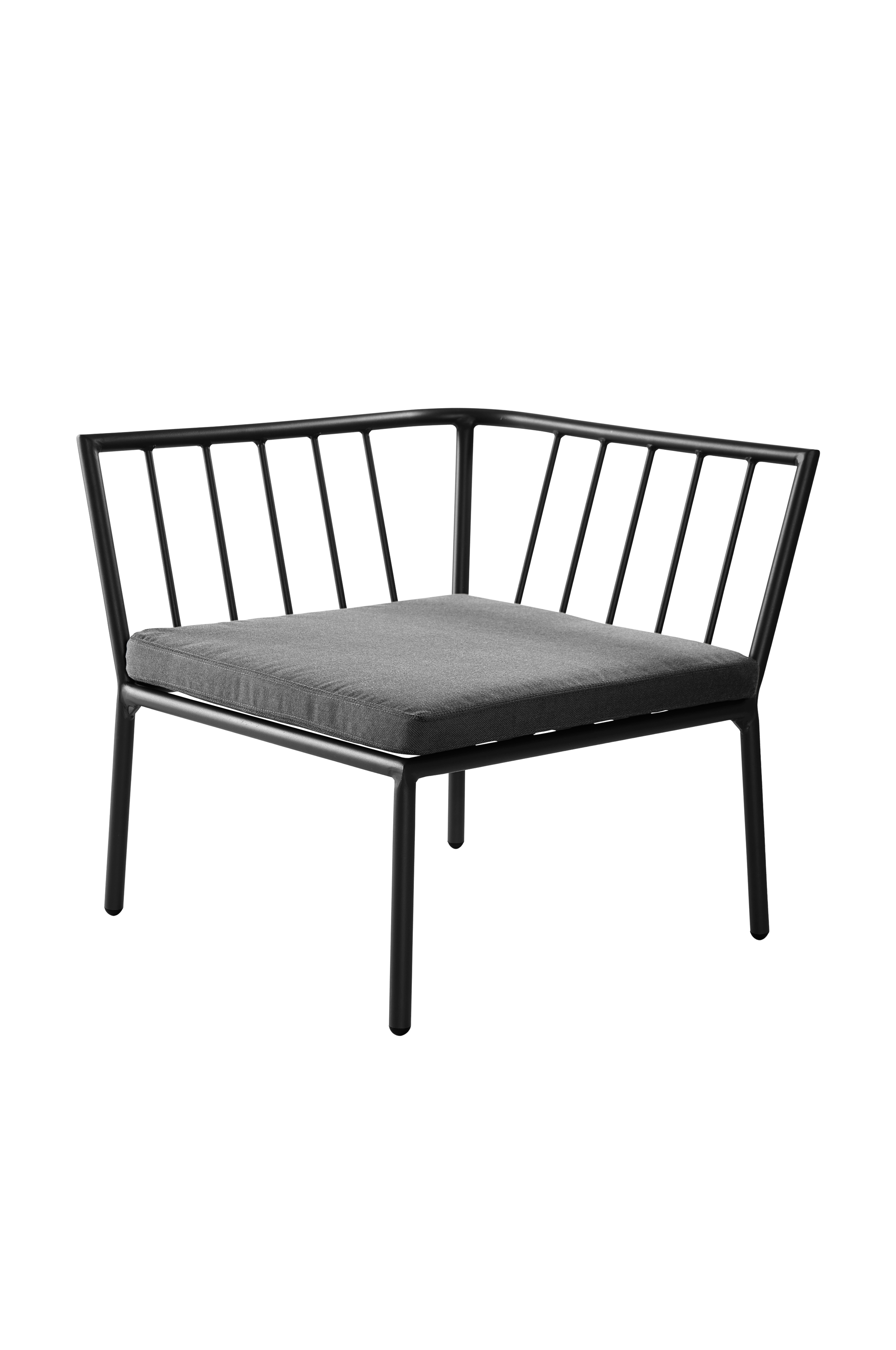 Sofamodul - hjørne, i pulverlakeret aluminium med mat finish. Sædehynde med polyesterbetræk og skumgummipolstring. Det er dejligt at flytte ud på altanen eller i haven, når sommeren er her. MENTON kan stå udendørs, og det gør udelivet lettere. Du behøver ikke at bære, så snart du vil sidde udenfor. Sofamodulet kan bruges som et hjørne, når du bygger en hjørnesofa sammen med sofamodulet uden stelstøtte. Men det er også velegnet som en individuel lænestol. Sofamodulet er pænt og har en behagelig sædedybde, og den lave sædehøjde giver den rette loungefølelse. Sædehynden er inkluderet, og hjørnet bliver ekstra flot, hvis du supplerer med dejlige puder langs ryglænet. Solide farver og mønstre giver mulighed for sjov variation. Fastgørelseselementer er inkluderet. Lav vægt. MENTON er nem at stable til opbevaring.