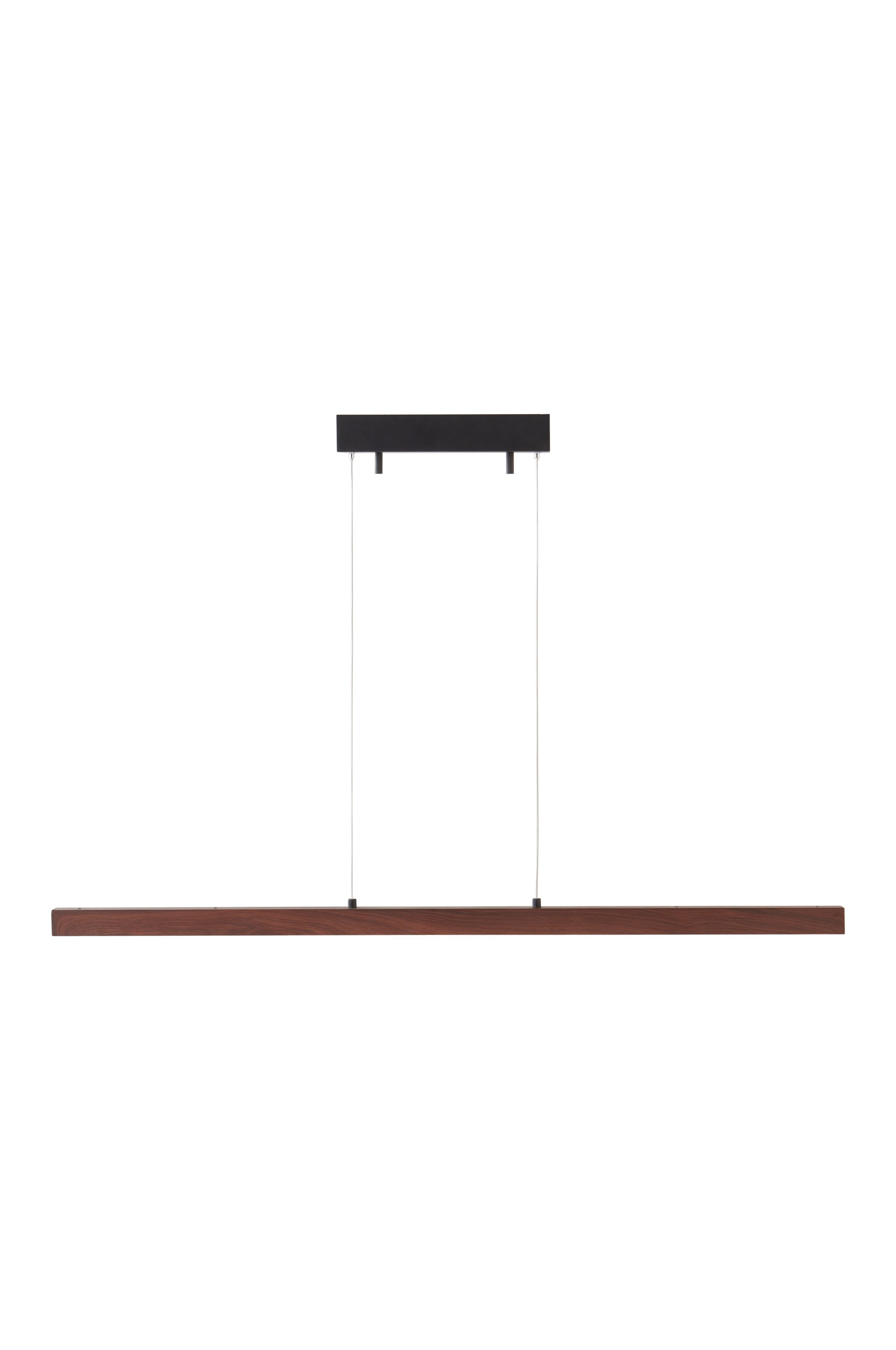 Loftlampe af valnøddemønstret stål med LED-belysning. METIS har et stilrent og grafisk udtryk som giver dit rum trendy belysning på en smagfuld måde. Denne type lineær armatur er velegnet som arbejdsbelysning over en køkkenø eller et skrivebord samt over spisebordet. Overfladen har printet mønster. Den slanke lampe hænger i ledninger fra loftsbeslaget og højden er justerbar. Transparent ledning. Sort baldakin af stål med krog til ophængning.