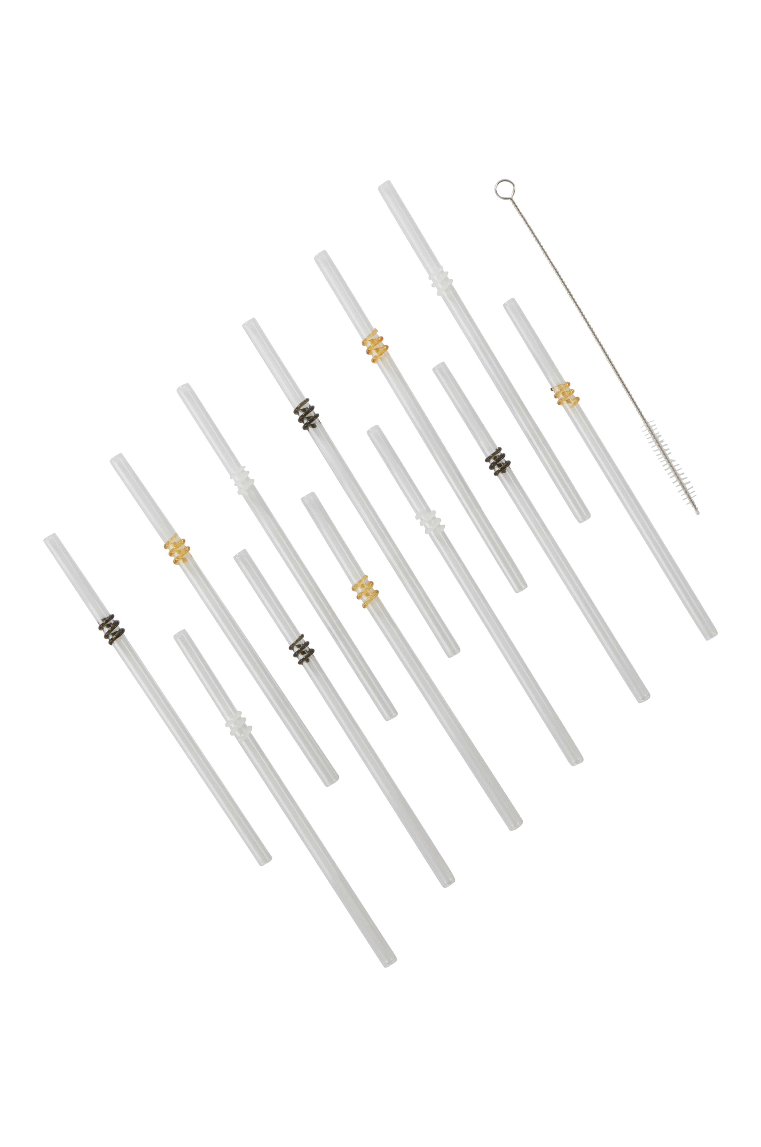 12-pak sugerør af glas med farvet dekoration i blandede farver. De festlige sugerør kan bruges til varme drikke, kolde drikke og milkshake.
