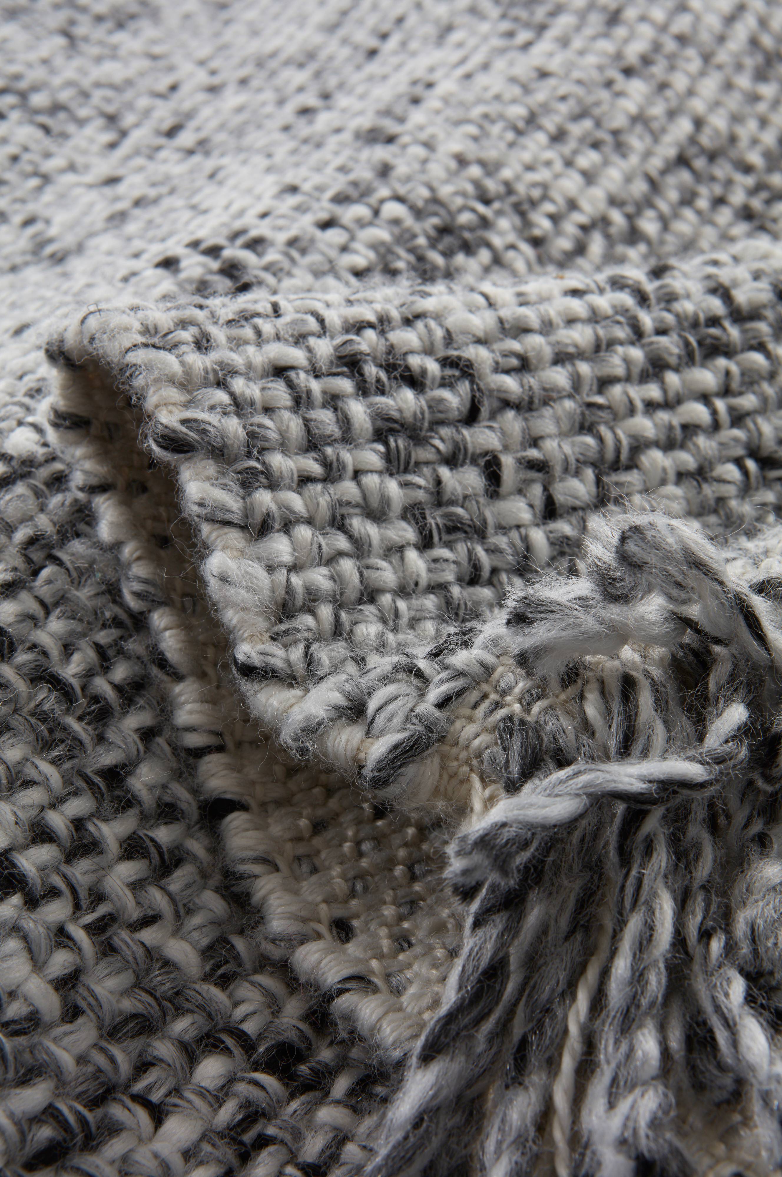 Glatvævet tæppe som er fremstillet af genindvundet polyester. Vævetekniken giver fin struktur og meleret effekt. Gulvtæppet er behageligt at gå på og har alle de egenskaber som et indendørs tæppe skal have, men kan også bruges udendørs. Det kan tåle at blive fugtigt uden at mugne, hvilket er en fantastisk fordel ved materialet. Længde på frynser 5 cm. Tykkelse 0,7 cm. 2300 g/m².
