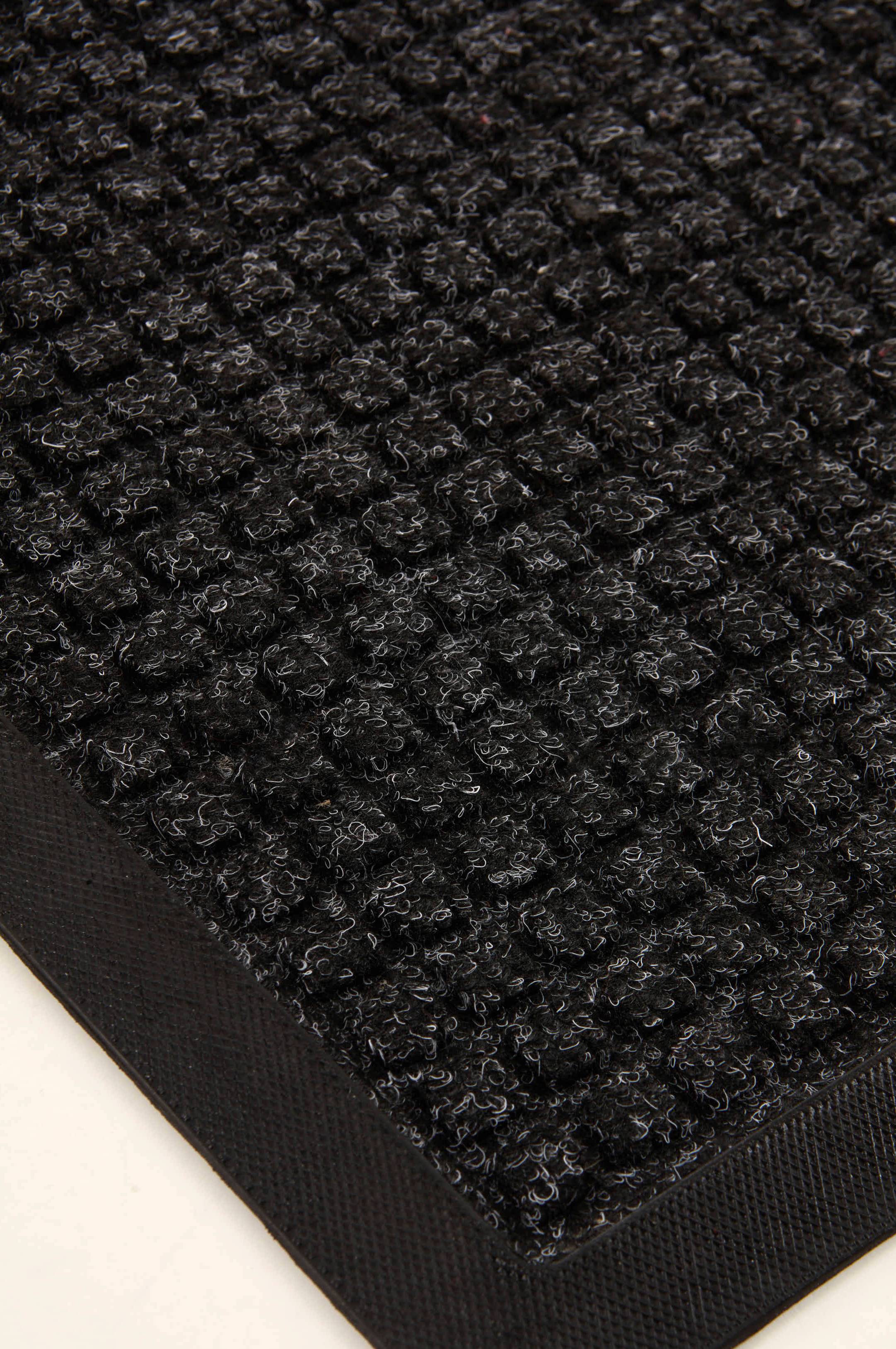 Ikke noget særligt, men pæn klassisk dørmåtte med fin børste, som man kan tørre skoene af på. Ikke særlig tyk, men gummiunderlaget ligger godt og holder sig på plads.