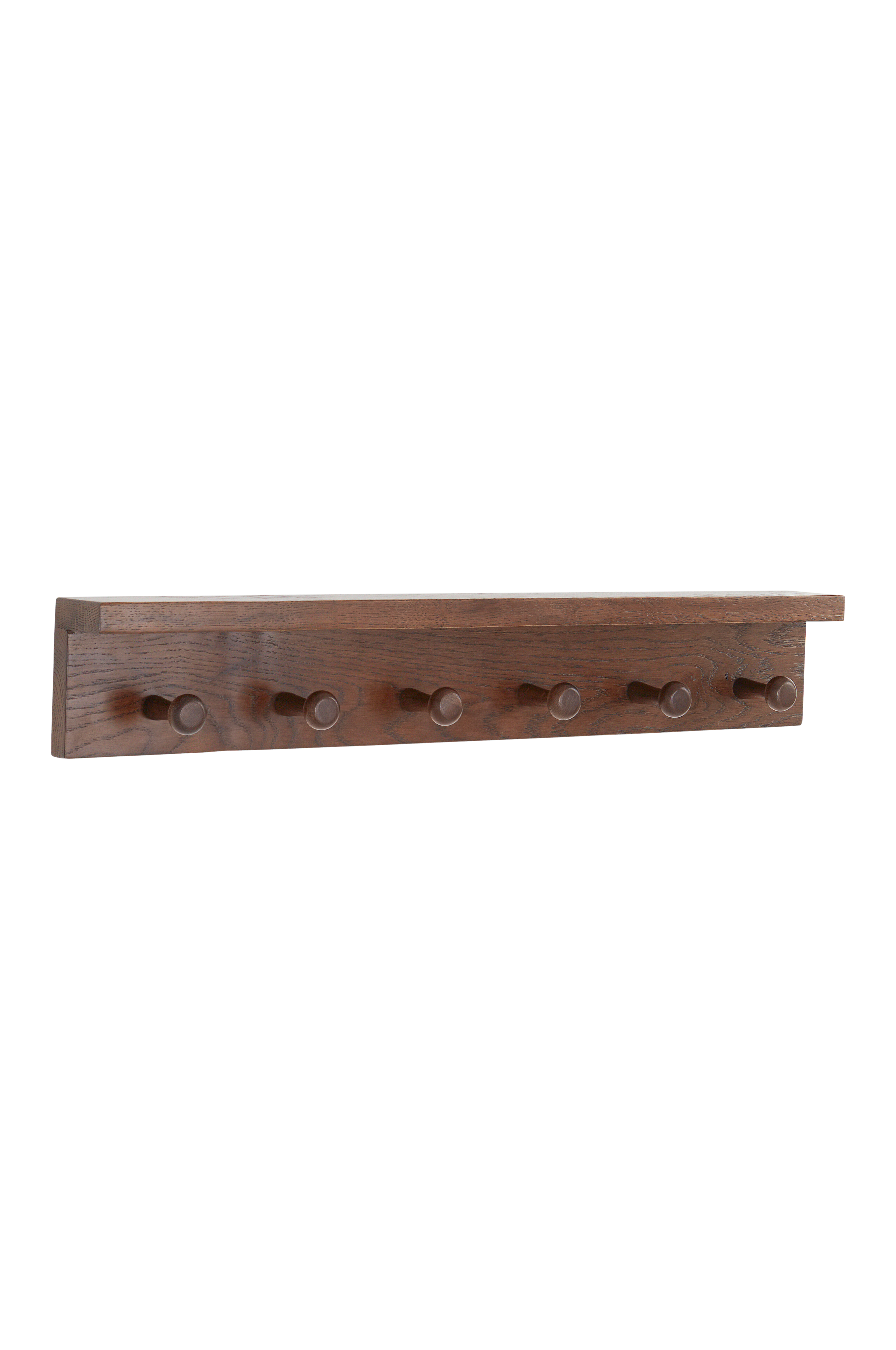 Knagerække af massiv eg som er FSC-certificeret. OSLO er en solid og rustik serie af det fineste egetræ, der er blevet kalket for at få en blød overflade i en grå-beige nuance. OSLO giver dig seks praktiske bøjler og desuden en lille hylde over bøjlerne til f.eks. nøgler og andre småting, som du gerne vil have lige ved hånden i entreen. Hver knage har en afrundet knop for enden, så tøjet ikke glider af.