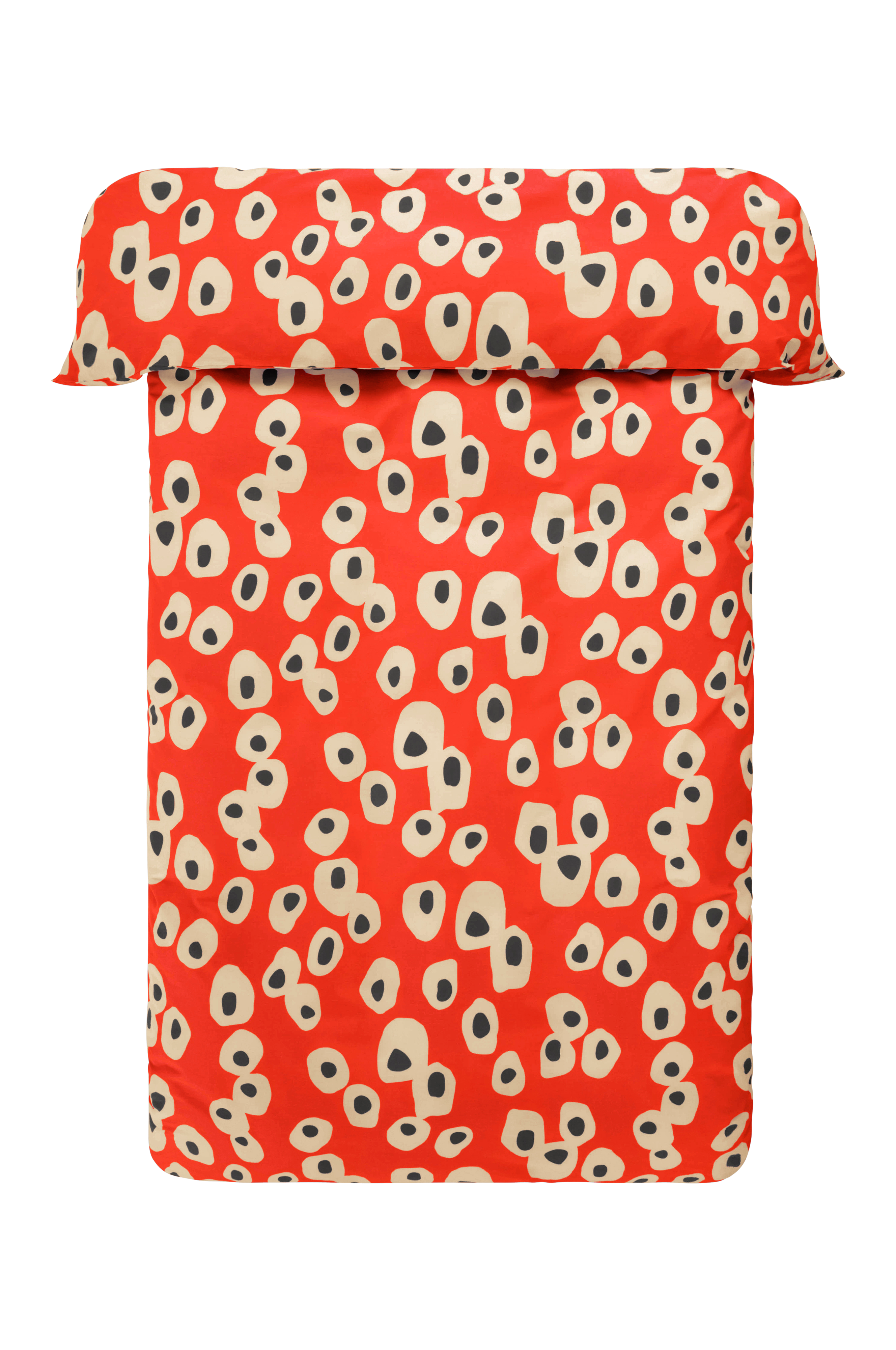 OVO dynebetræk giver ethvert soveværelse et retropræg med sit charmerende spejlægsinspirerede design af Maria Carlberg. Det er fremstillet af økologisk bomuld og kombinerer ubesværet dristige mønstre og hyggelig varme, hvilket gør det ideelt til at bringe nostalgisk stemning ind i dit rum.