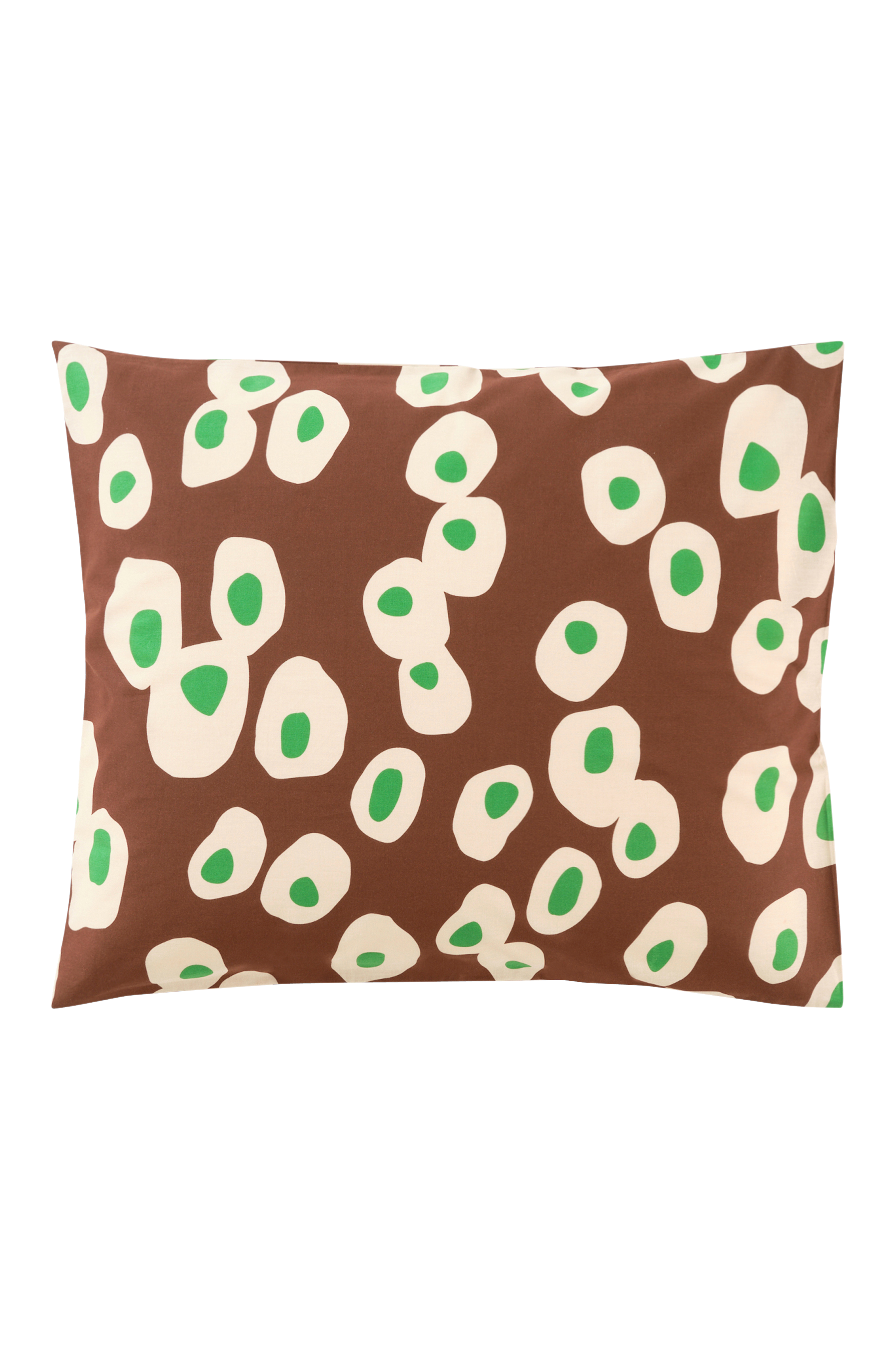 OVO-pudebetrækket med et spejlægsinspireret mønster af Maria Carlberg giver soveværelsesindretningen et legende touch. Det er fremstillet af økologisk bomuld og kombinerer kreativitet og komfort, hvilket er perfekt til at give dit rum personlighed.