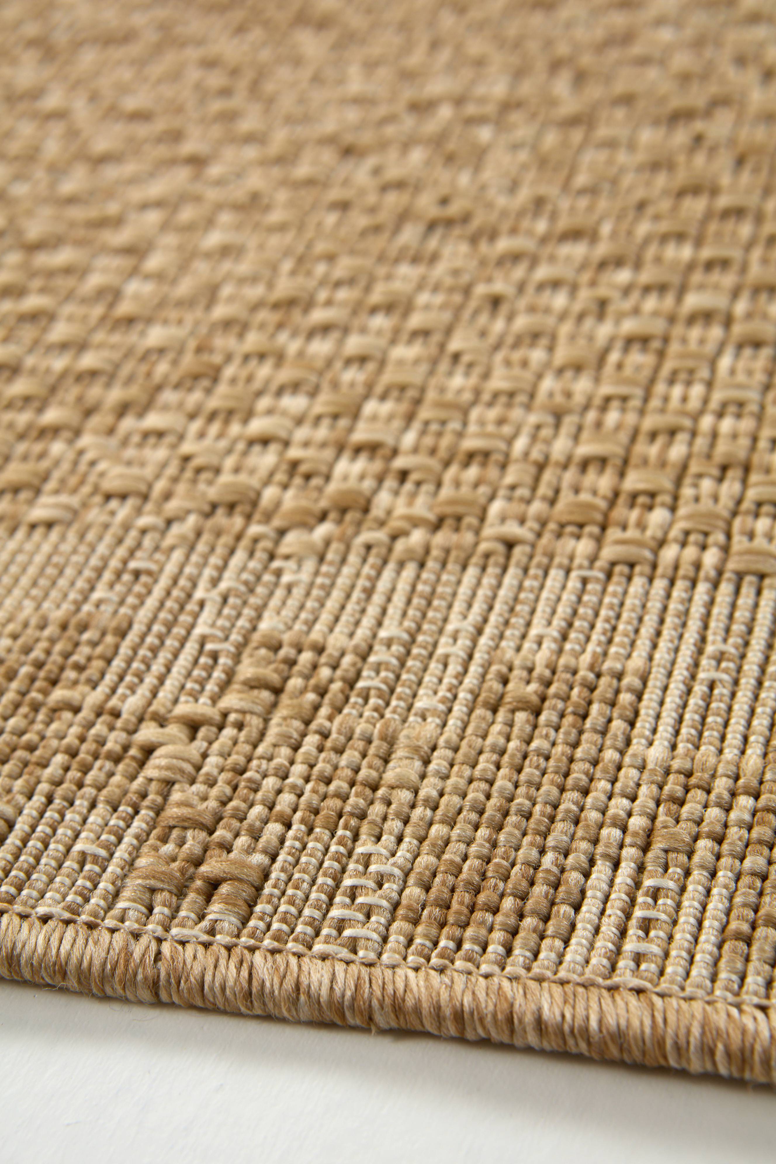 PILAR-tæppet tilfører stilfuld charme og naturlig appel med sit jute-look design. Det er perfekt til udendørs rum, balkoner eller verandaer og forbedrer rummene med sit dekorative mønster. Det er alsidigt til indendørs brug og er også et smukt supplement til køkkenet.
