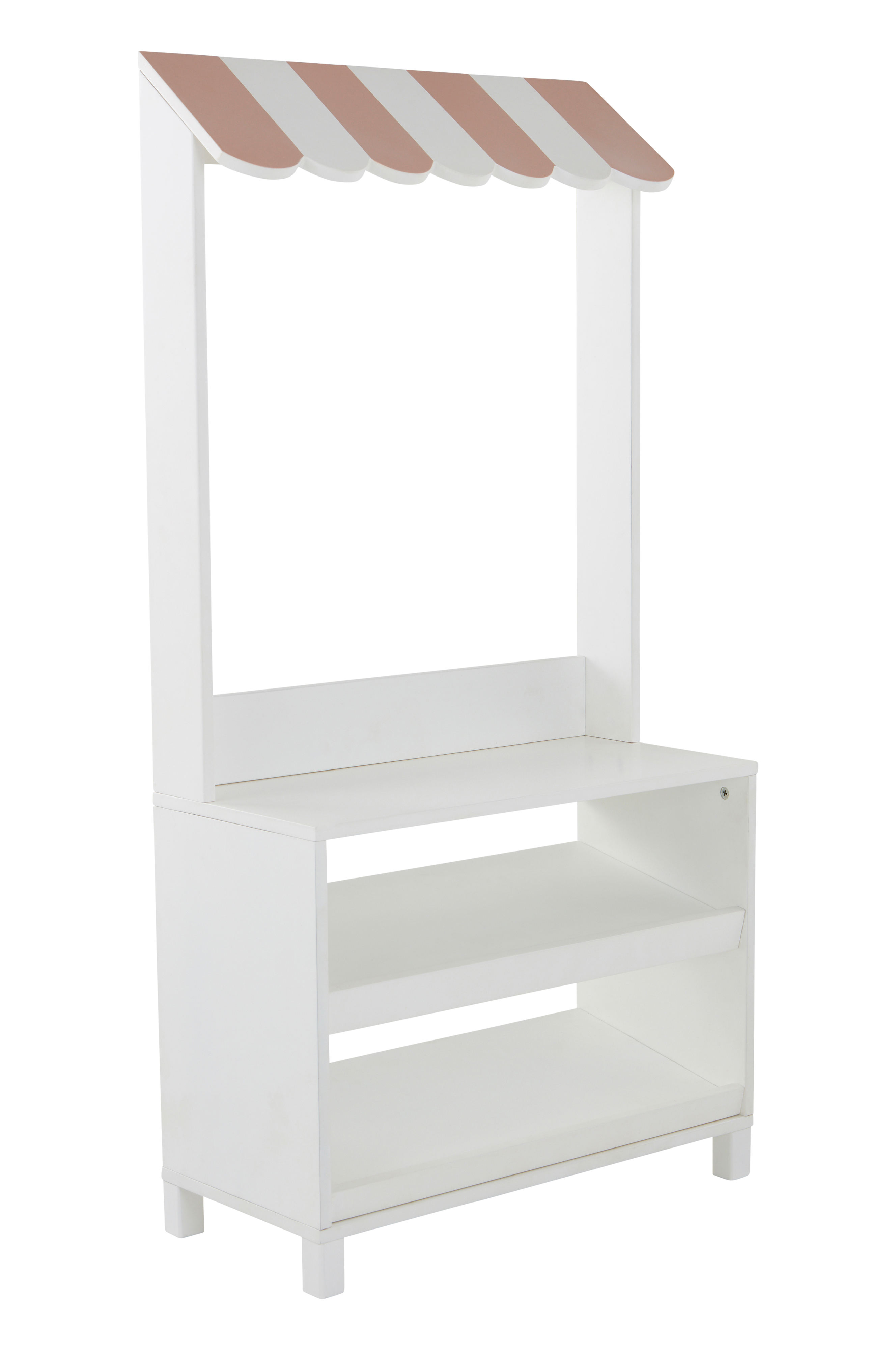 QUISCO er en flot, vellavet og sjov børnekiosk lavet af FSC-certificeret fyrretræ og MDF. Den store kiosk har to hylder under disken og et lille tag. Ved leg står den bedst fritstående, men den fungerer også mod væggen. Overfladen er behandlet med vandbaseret farve. Skal færdigsamles. Samlevejledning medfølger.