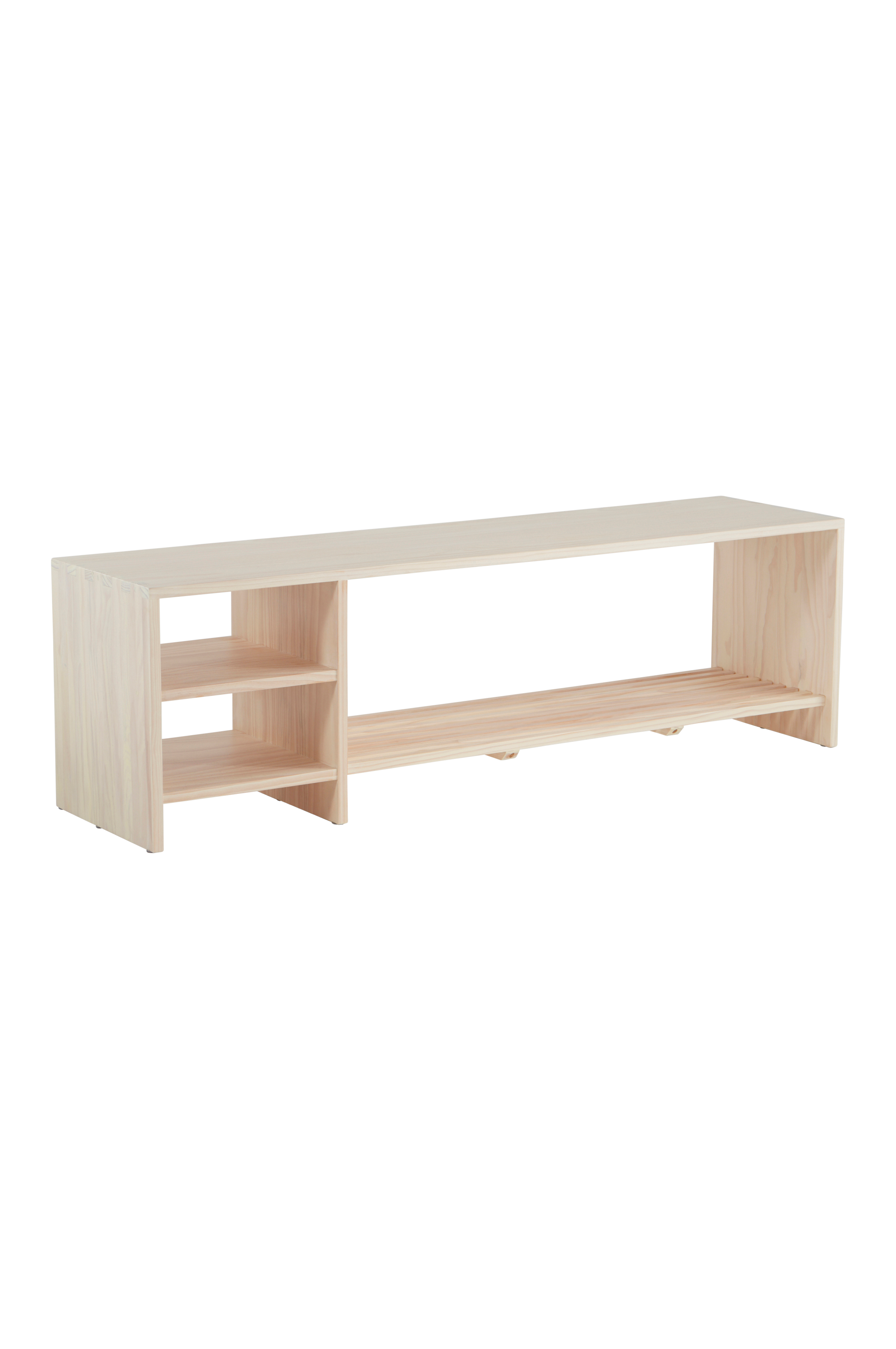Størrelse: Højde 45 cm, bredde 150 cm, dybde 38 cm. Højde mellem hylder 16 cm. Frihøjde under møbel 8,5 cm.