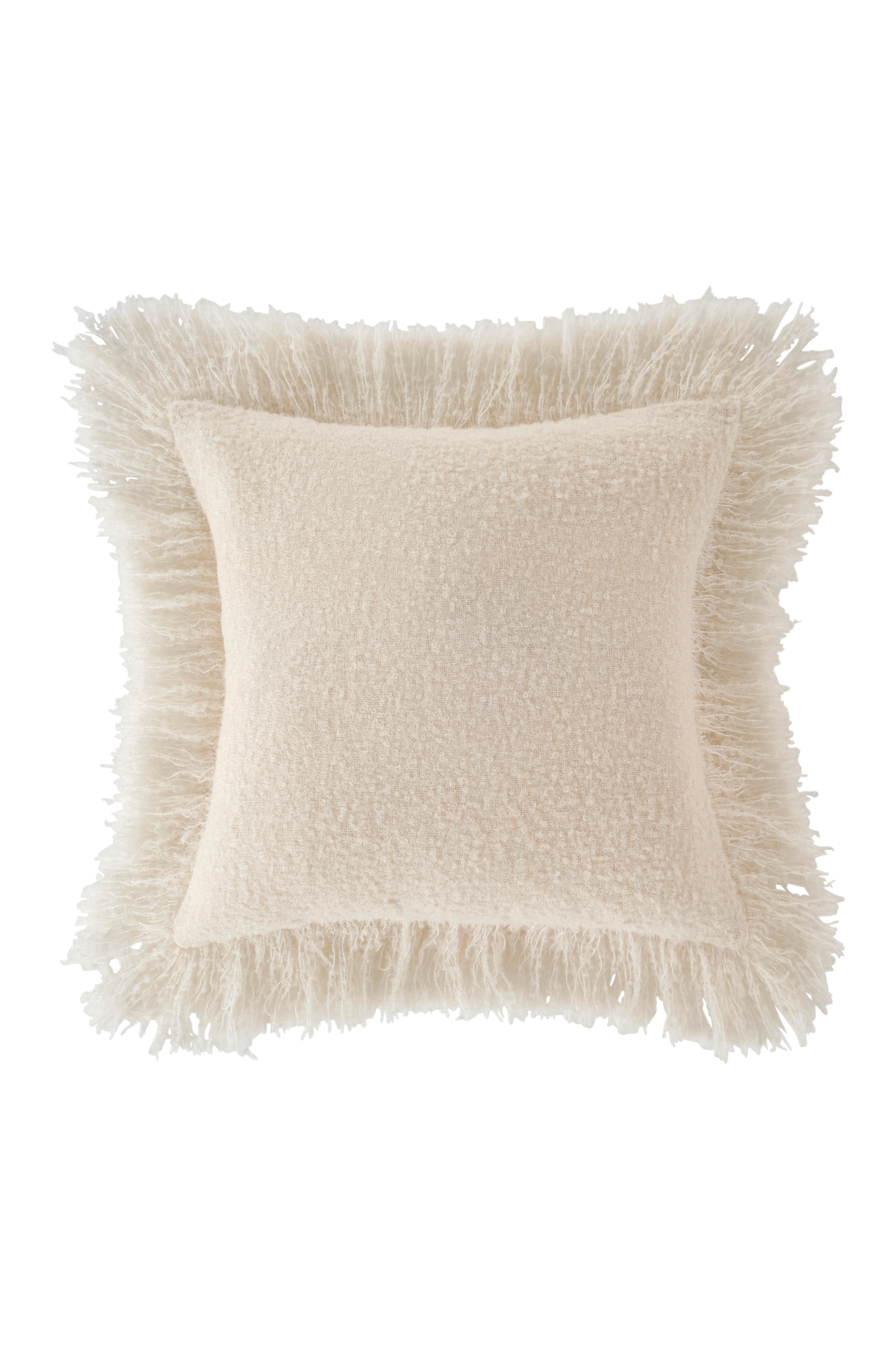 Pudebetrækket RUFUS er ideelt til trendy indretning. Det har sidefrynser, en normal lynlås og en unik tekstur af fint garn. Variationer i frynselængde og -vægt giver hvert stykke en særlig karakter, der forstærker dit hjems moderne charme.