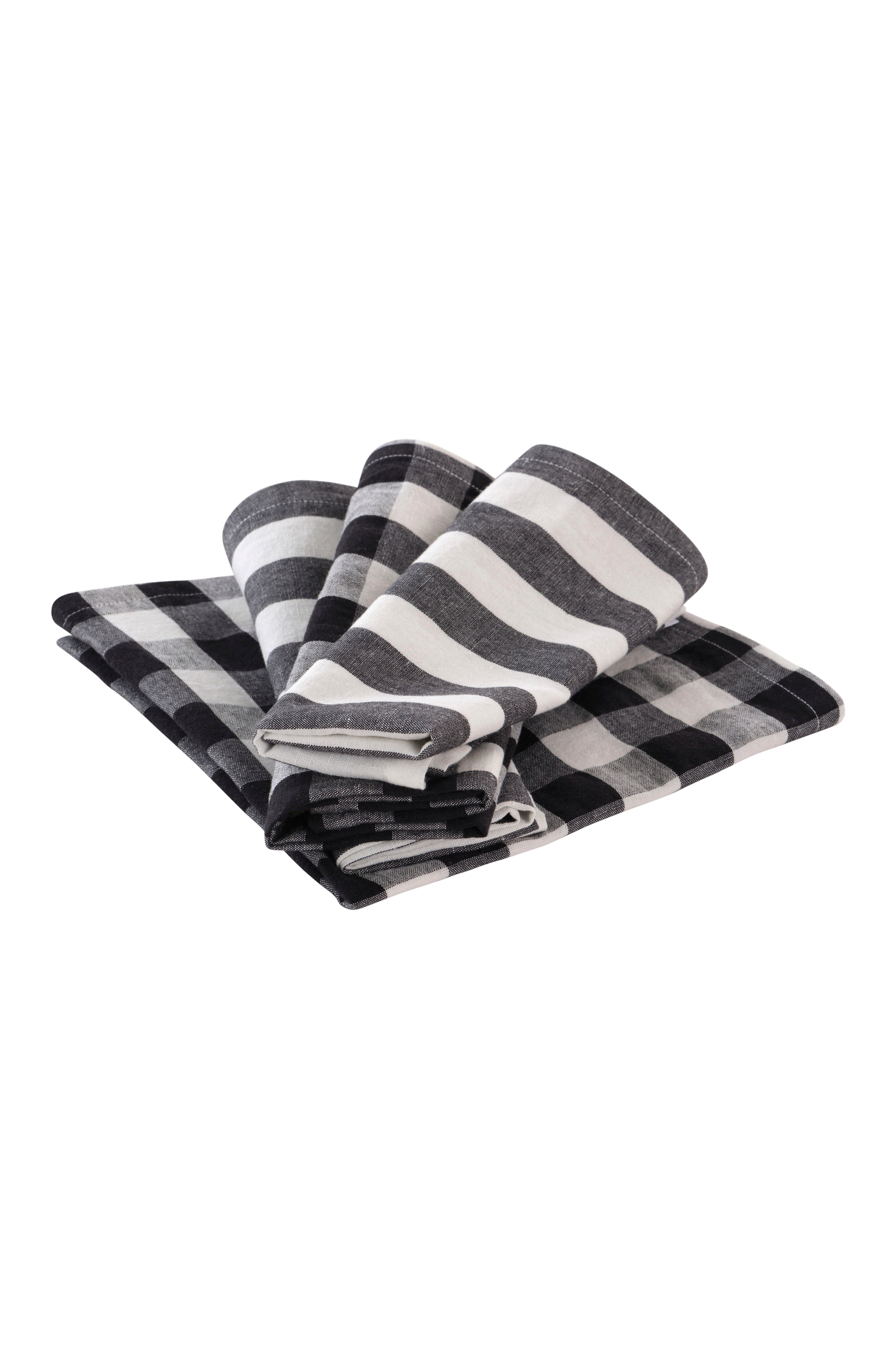 SANNE-serviettsættet består af fire dele: to med stribet design og to med ternede mønstre. Det er fremstillet af en blanding af bomuld og hør og giver din spisestue et moderne præg. Koordiner med matchende elementer for et sammenhængende udseende.