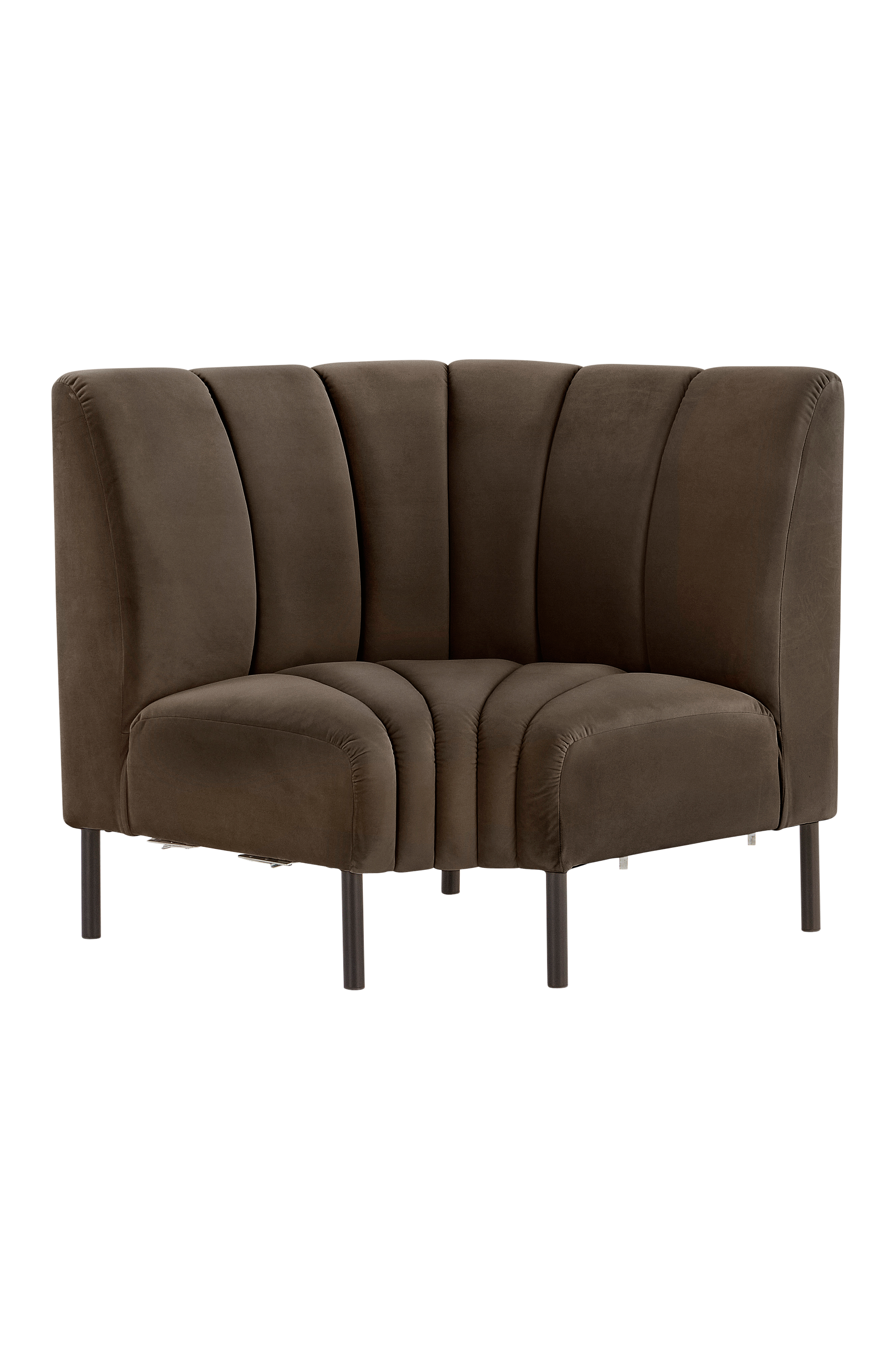 Det flotte velourbetræk er lavet af genbrugspolyester med en slidstyrke på 40.000 Martindale. Stellet er af plywood og fyrretræ, alt træ er FSC-certificeret. Sofaen har zigzag-fjedre kombineret med skum og polyesterpolstring for at gøre den ekstra behagelig at sidde på. De runde ben er lavet af metal med sort pulverlakering. Køber du flere moduler bygges de sammen med de medfølgende metalbeslag. Betrækket er ikke aftageligt. Skal færdigsamles. Samlevejledning medfølger.