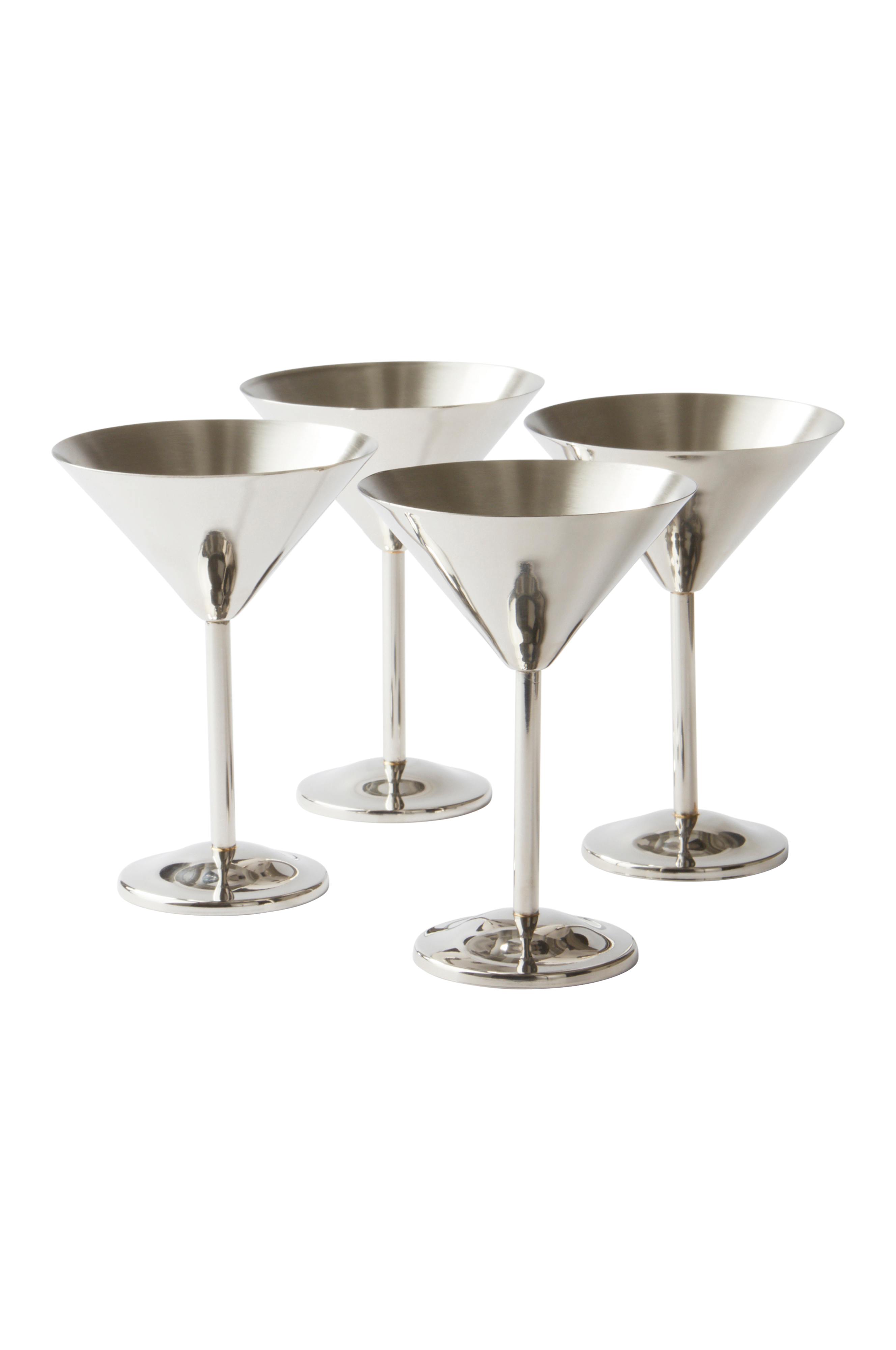 4-pak cocktailglas af rustfrit stål med højblank finish. De festlige cocktailglas gør din invitation ekstra festlig. SARAI har også den store fordel ikke at sprede glasskår, når nogen ved et uheld taber et glas.