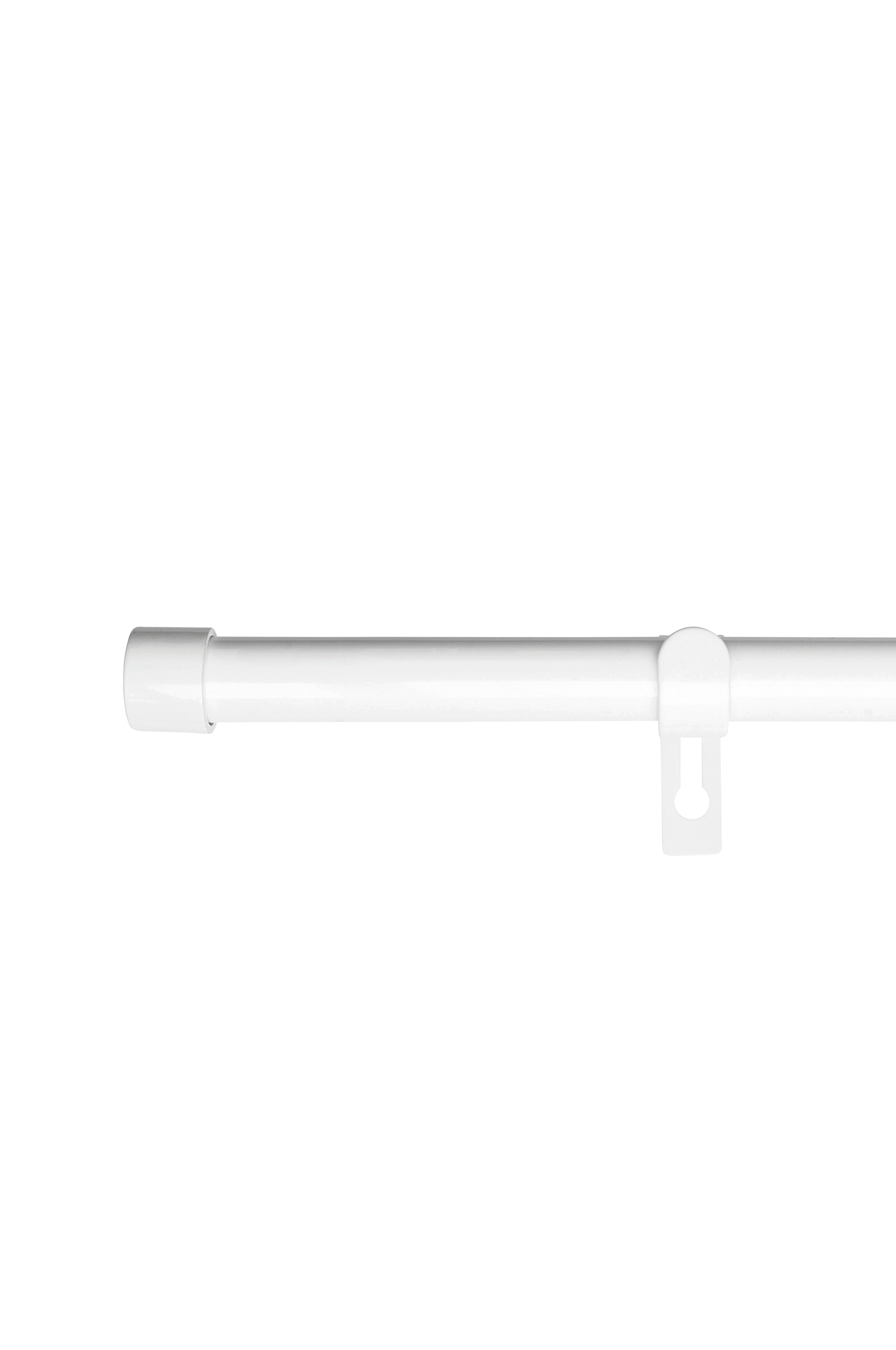 En enkel, men god gardinstang. Frisk hvid farve, Kan let udvides til den ønskede længde. Passer fremragende ind i vores soveværelse-