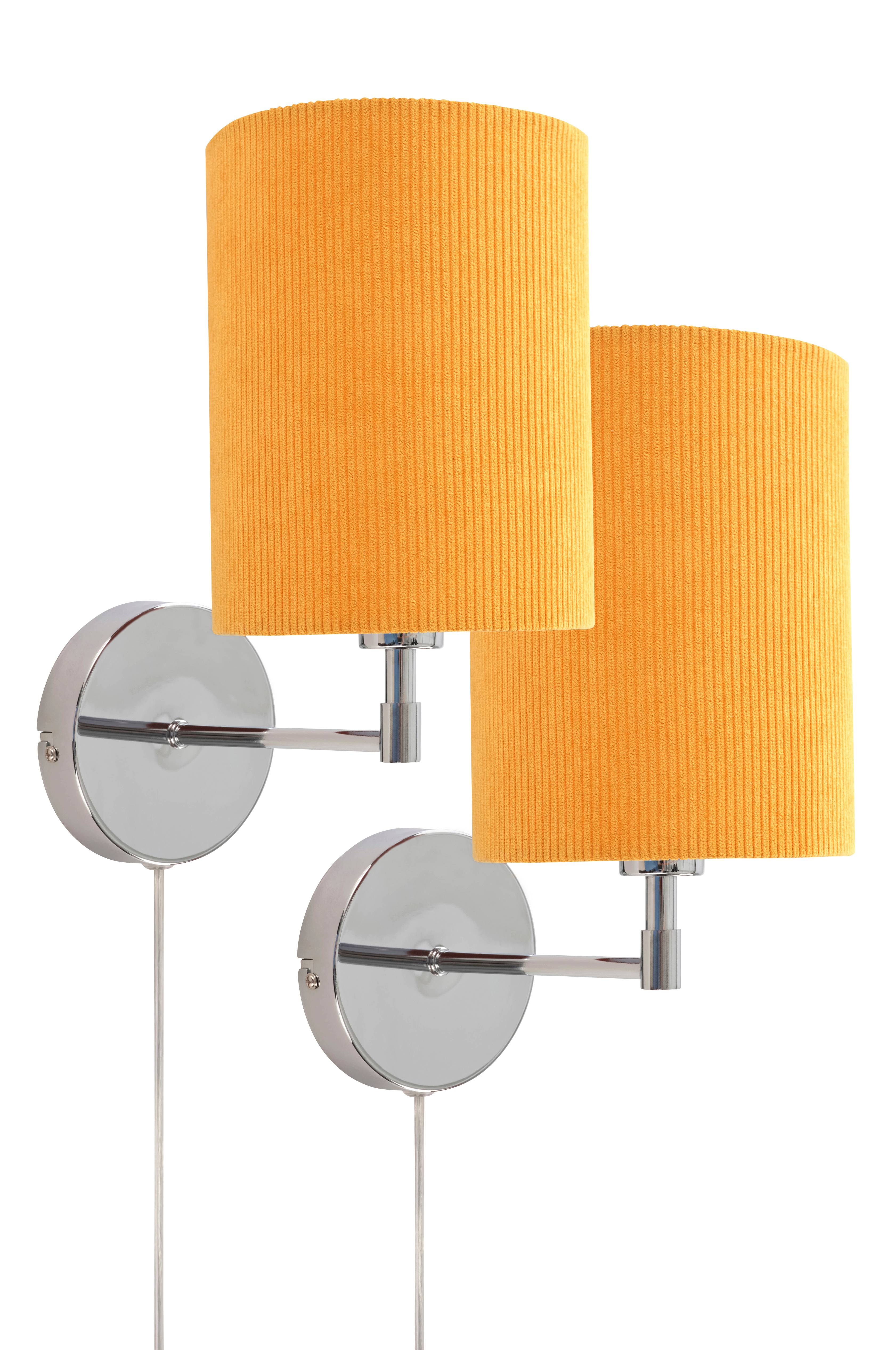 SETH-væglampen har en kromfod og en retroinspireret skærm af fløjl, som giver vintagecharme til ethvert rum. De sælges parvis og supplerer din indretning. Sæt den sammen med den matchende bordlampe for et hyggeligt og stilfuldt look. Ideel til elskere af klassisk design.