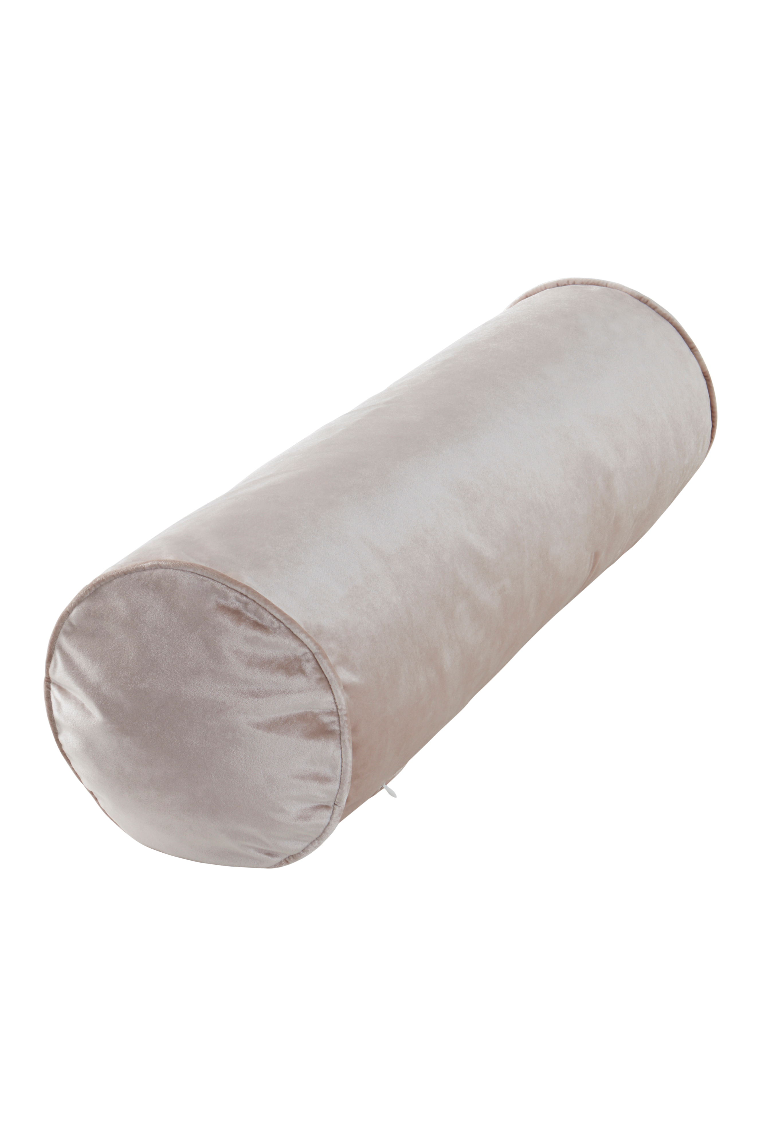 1-pak cylinderpude helt i polyester. Yderstoffet er i elegant velour som skinner smukt, farvenuancen opleves forskelligt afhængigt af, hvordan lyset falder. Puden har paspoleret kant i kanterne og skjult lynlås på den lange side. Monteringspuden har polyesterbetræk og polyesterfyld. Fyldets vægt 600 g.