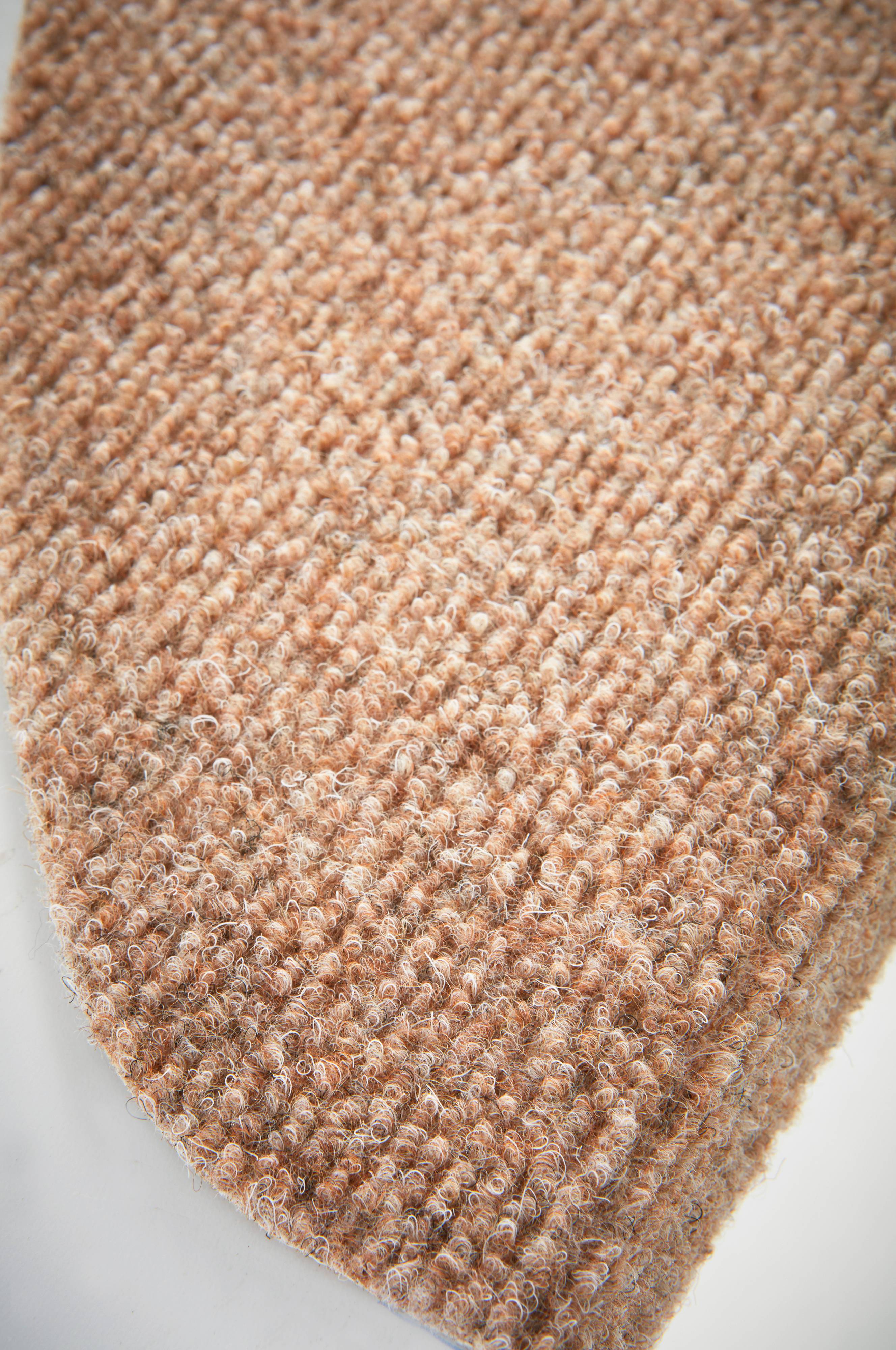 2-pak trappetrinsmåtter i tuftet polypropylen med selvklæbende bagside. Måtterne er ensfarvede og har en halvmåneform, der passer de fleste trapper. Måtterne har lim på den ombukkede kant, som holder dem på plads.