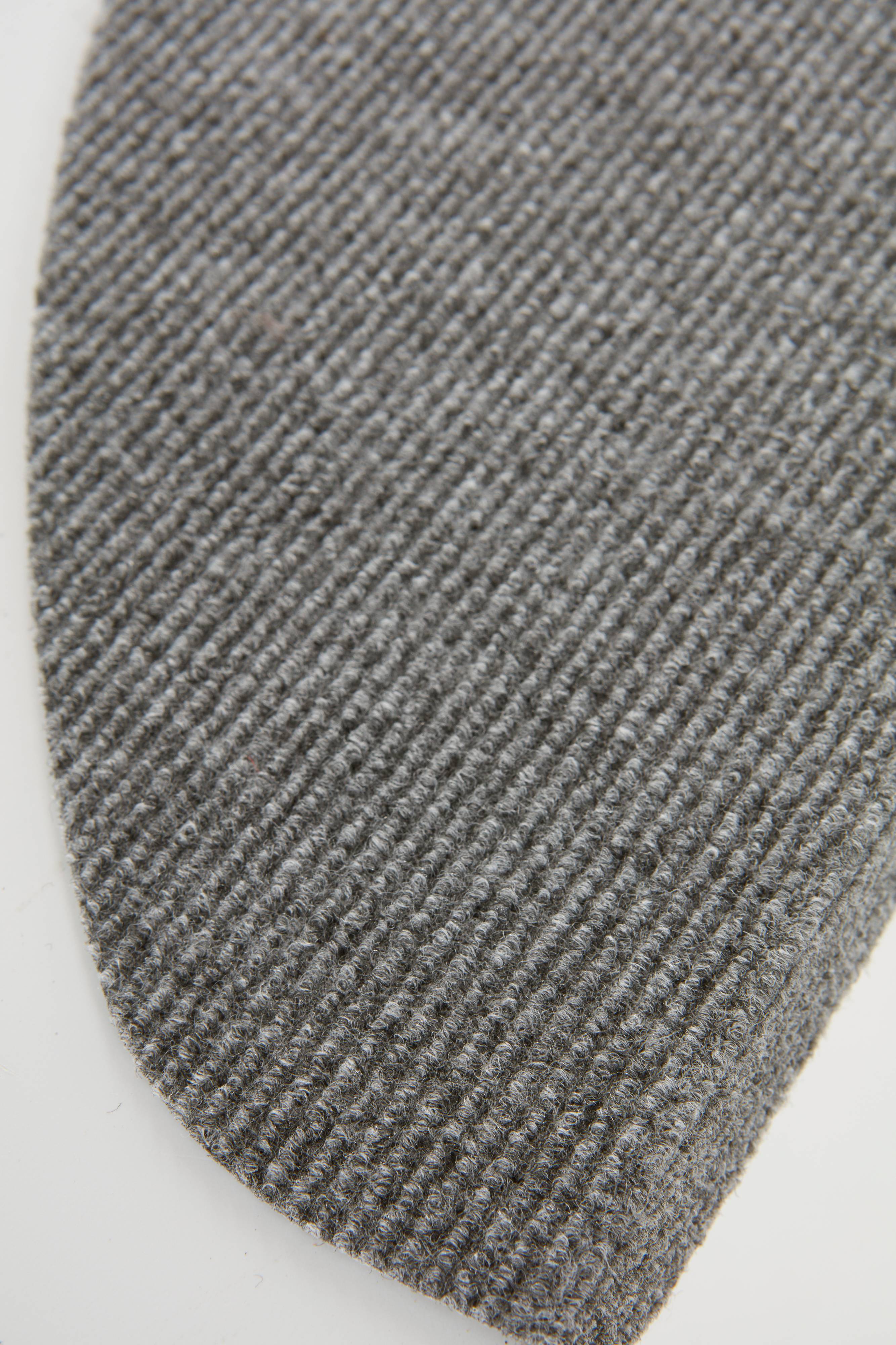 2-pak trappetrinsmåtter i tuftet polypropylen med selvklæbende bagside. Måtterne er ensfarvede og har en halvmåneform, der passer de fleste trapper. Måtterne har lim på den ombukkede kant, som holder dem på plads.