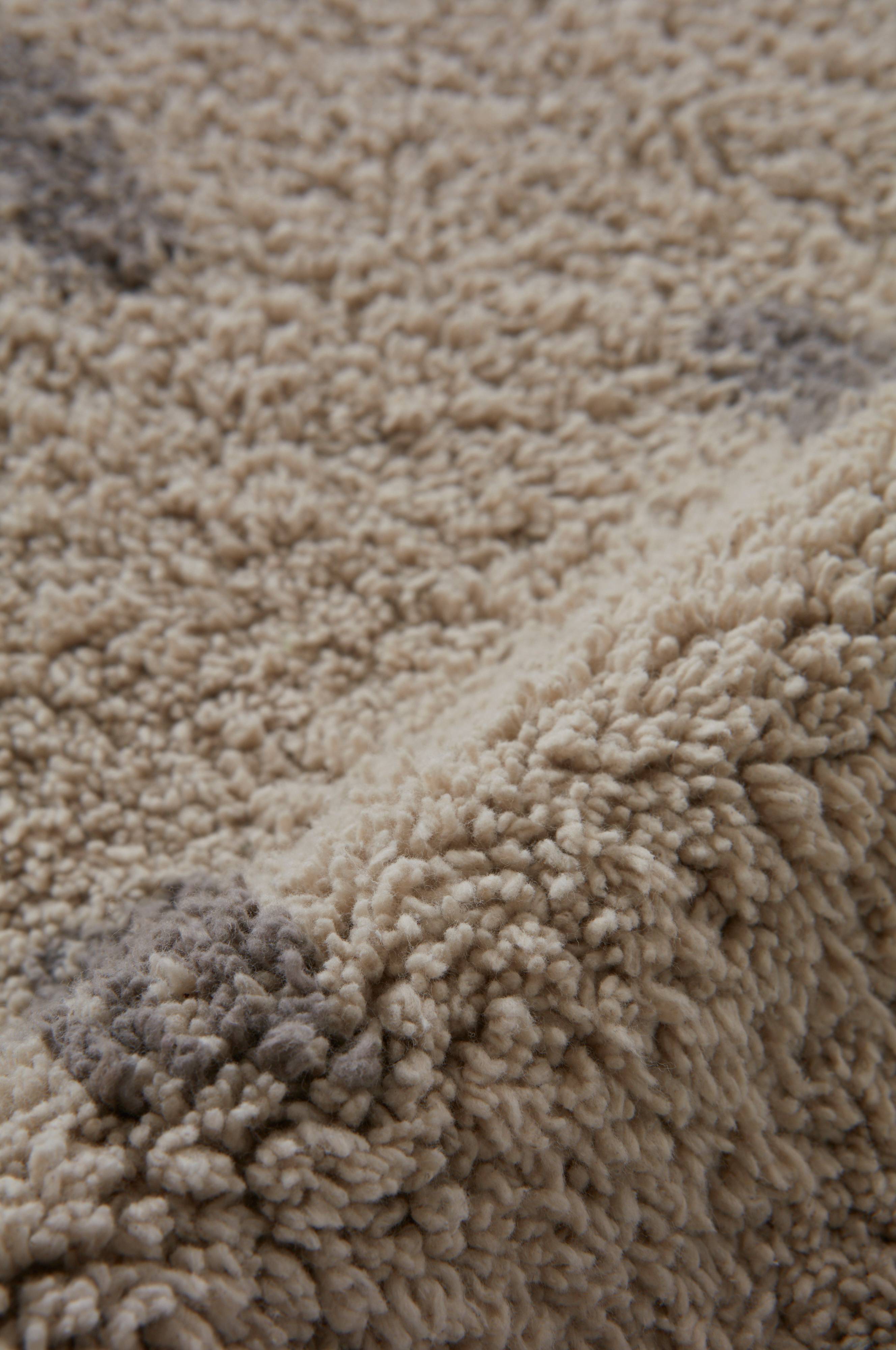 Tuftet tæppe af bomuld med diagonale korte streger som skaber et flot mønster. Gulvtæppet har fine, knyttede frynser langs kortsiderne. Frynselængde 8 cm. Luvhøjde 1 cm. Tykkelse 1,1 cm. 1500 g/m².