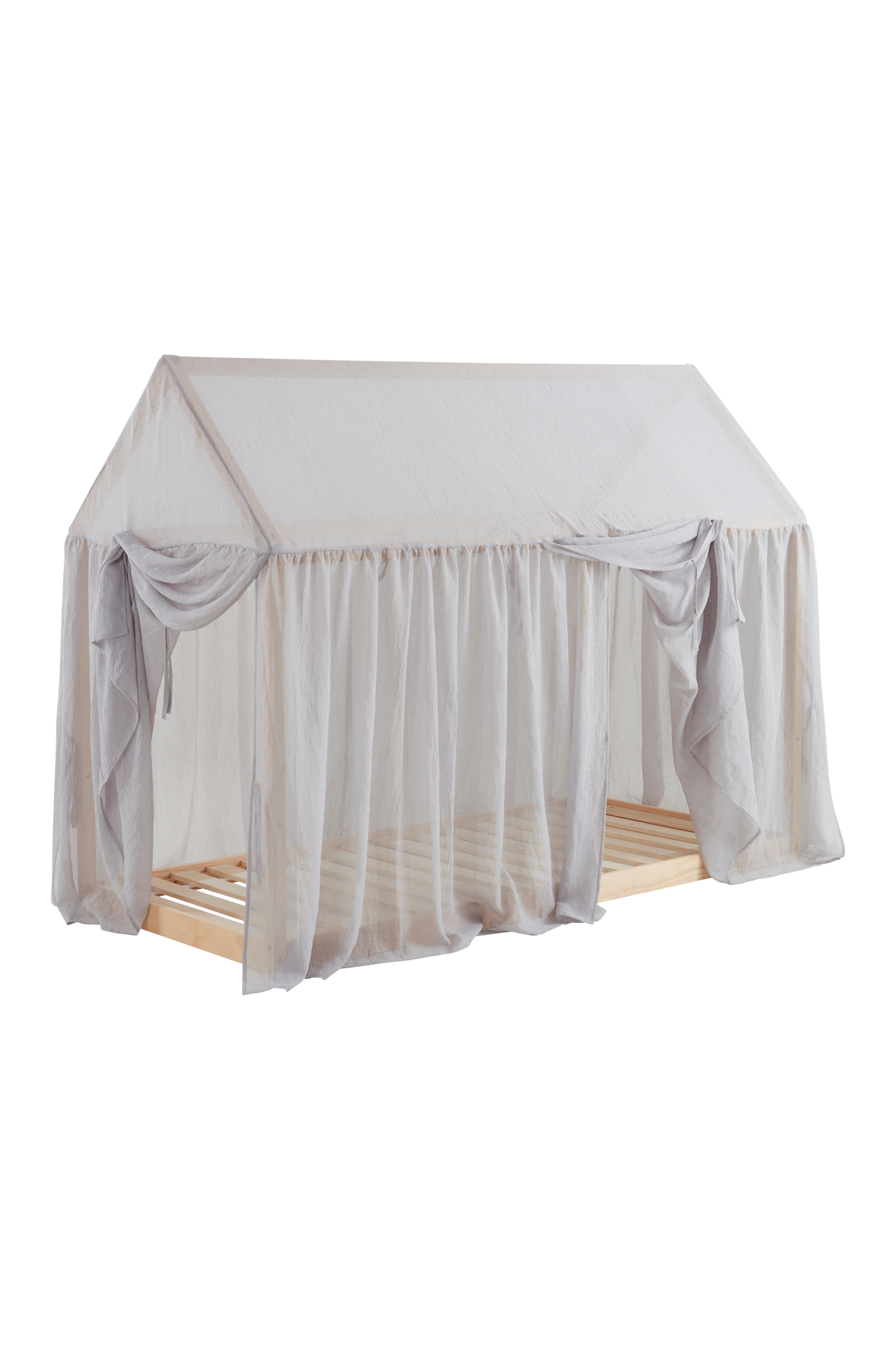 Telt lavet af blødt og luftigt polyesterstof, passer til CASTILLO barneseng. Kombiner teltet med tremmesengen, og få en hyggelig seng at krybe ned i og sove i. Teltet er skræddersyet til at passe til stellet, og du trækker det bare over og fastgør det med velcro. Teltet kan åbnes og lukkes med bånd i hvert hjørne. En hyggelig seng gør det sjovere at gå i seng, og hvem har lyst til at kede sig? Med teltet kan sengen også bruges som en hytte med en hyggelig teltfornemmelse.