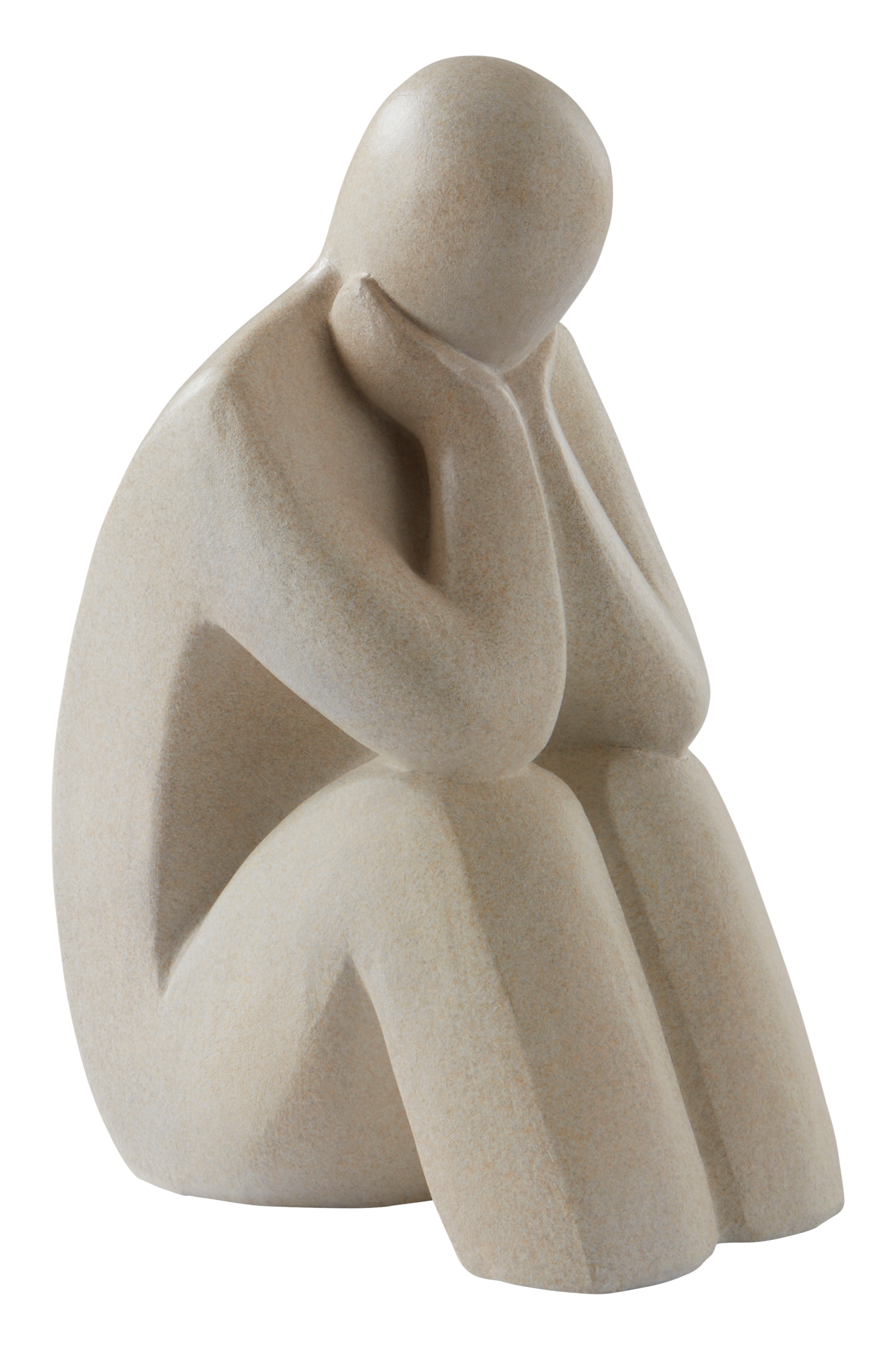 Håndlavet skulptur af polyresin. Det tænkende menneske er stilfuldt skulptureret. Den beige farve er let meleret og har en mat overflade, der giver skulpturen et harmonisk og naturligt indtryk. Det fine håndværk gør hver skulptur unik.