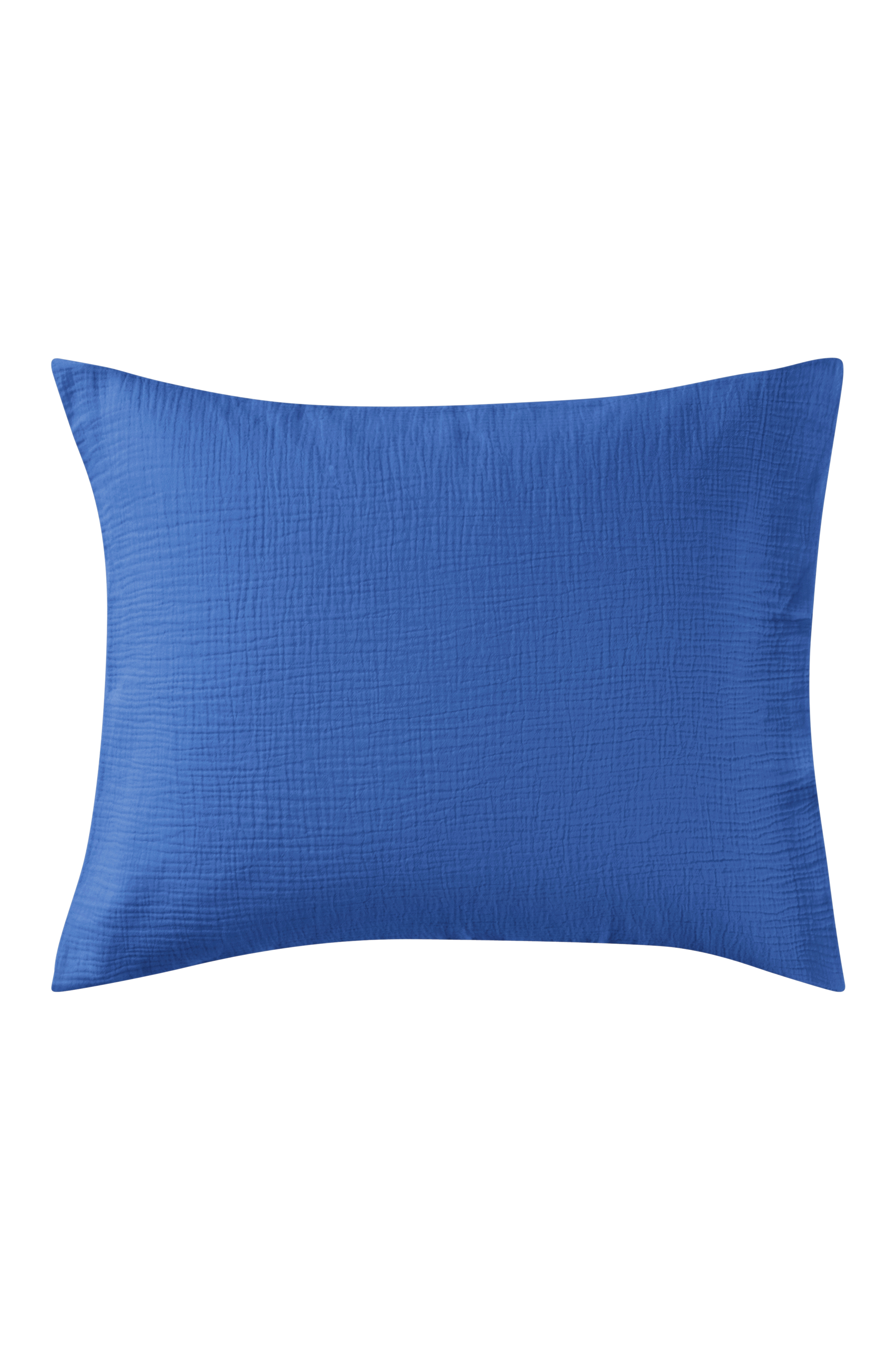 Ensfarvet pudebetræk i skøn, økologisk bomuldsmusselin. Musselin er et blødt tyndt stof i to lag, vævet med boblende effekt, hvilket gør stoffet blødt og ekstra praktisk. Du behøver ikke at stryge eller rulle. Den er også vasket for en blødere følelse og for at få den boblende tekstur frem. Det behagelige musselin er skønt at sove i. Trådtæthed på 178 tc. (Trådtætheden angiver antal tråde, Thread Count, pr. kvadrattomme i et stof. Jo højere trådtæthed desto højere kvalitet.)