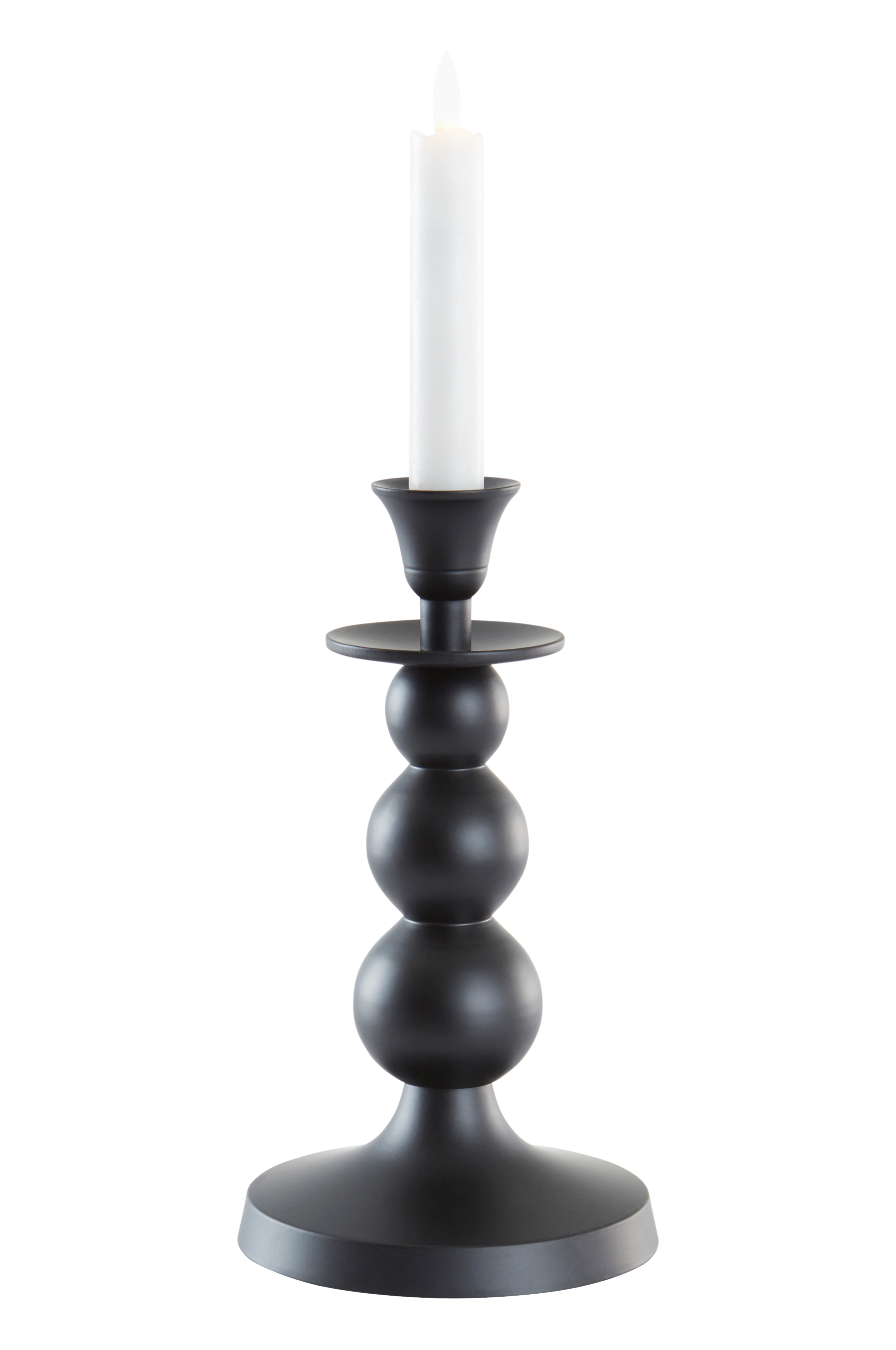 Lysestage af aluminium. Den fine, klassiske model ændrer karakter med overfladebehandlingen. Den med sølvfarvet plettering føles luksuriøst elegant. Den matsorte får et touch af nordisk stil og folklore. Den sorte med blank overflade passer godt ind i en ung, trendy stil. De farvestrålende lysestager signalerer glæde. Lys medfølger ikke.