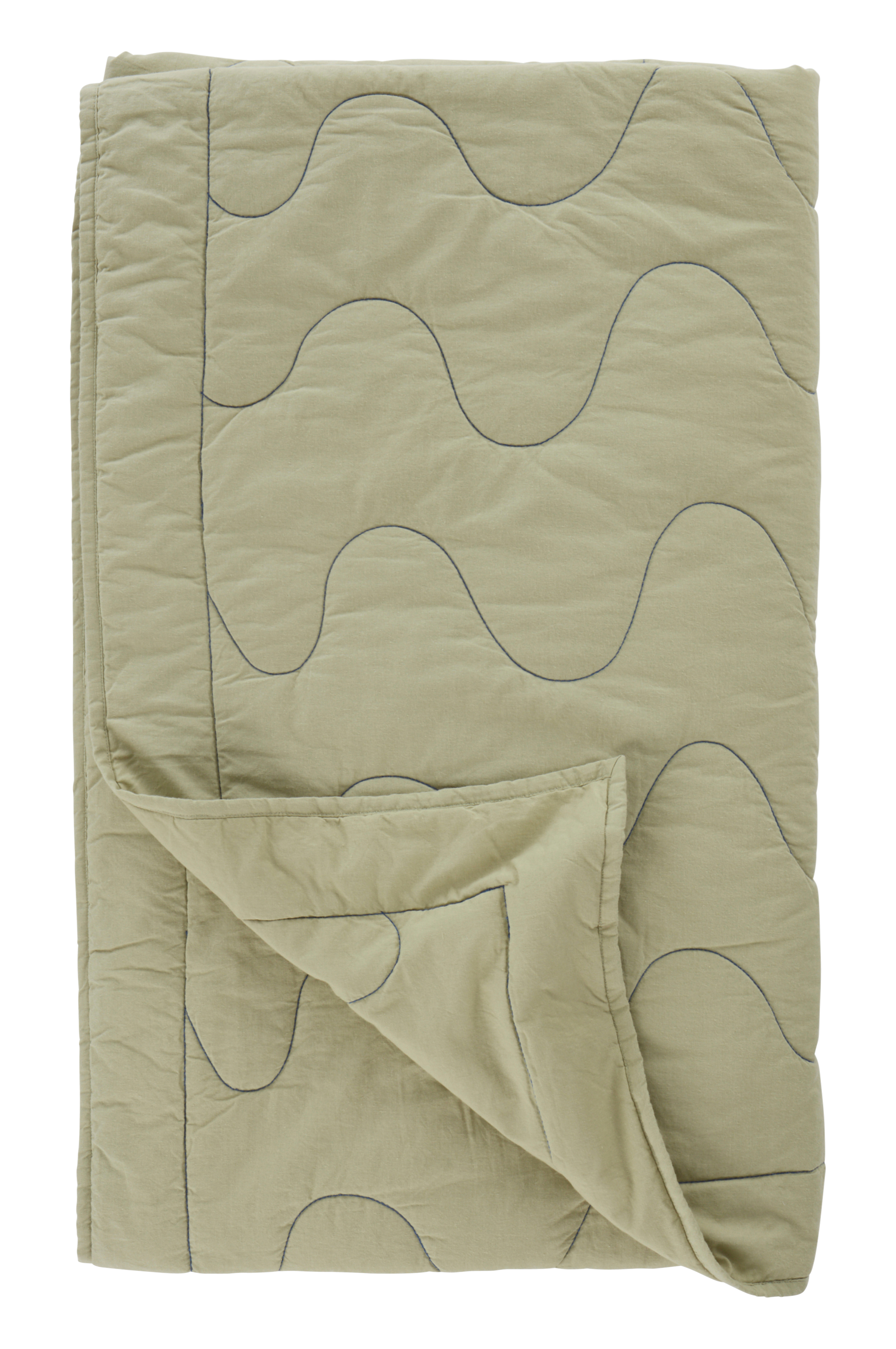Sengetæppe, der er tyndt og fleksibelt, nemt at rede op med, behageligt som et ekstra tæppe og nemt at vaske. Stoffet er økologisk bomuld og har et quiltet bølgemønster, sømmen er i en anden farve. Sengetæppet har polyestervattering, der holdes på plads af sømmene. Det skønne bomuldsstof er stykvasket så det er ekstra blødt og dejligt. Sengetæppet er vendbart med to ens sider.