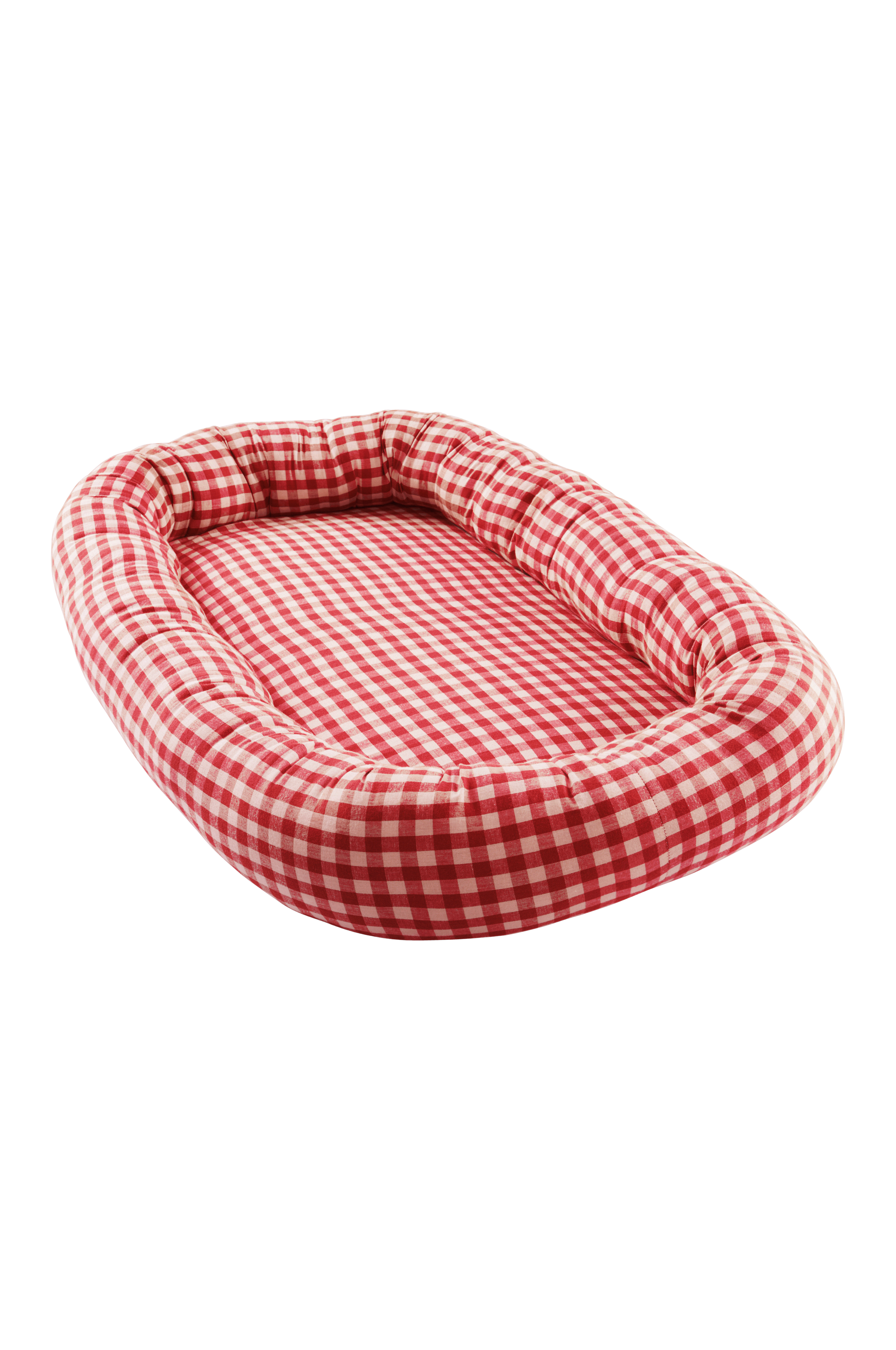 Babynest i skøn, økologisk bomuldskvalitet med vævede tern. Stoffet er vasket for at få et blødere udtryk og bomuld føles kølig og skønt mod huden. De garnfarvede tern går i klassiske farver, lette at matche med andet. Kanten rundt om er blødt polstret med polyesterfiber. Madrassen er af polyesterskum. Lynlås under babynesten gør det nemt at tage madrassen ud ved vask. Babynest er en hyggelig og tryg soveplads for din baby og den passer fint både i tremmesengen som ved siden af dig i sofaen eller som puslepude når I er ude at rejse. Stoffets gramvægt er 119 g/m².