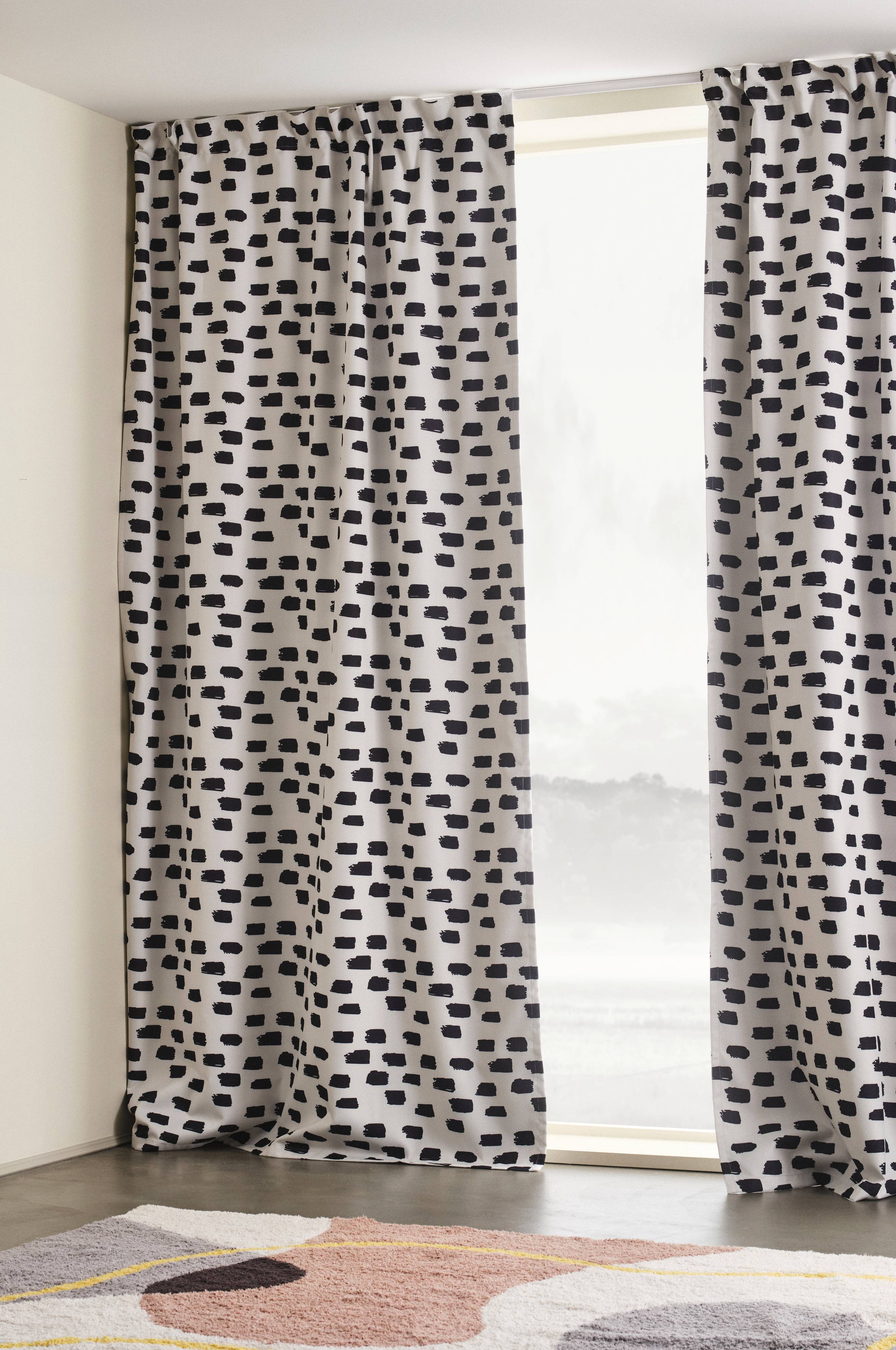 WYANDRA er et mørklægningsgardin, der er fremstillet af polyester. Det stærke stof blokerer for lys og gør børneværelset, soveværelset eller tv-stuen mørkere. Stoffet har et penselstrøgsmønster på den side, der vender ind mod rummet, og en lysblokerende belægning på bagsiden.