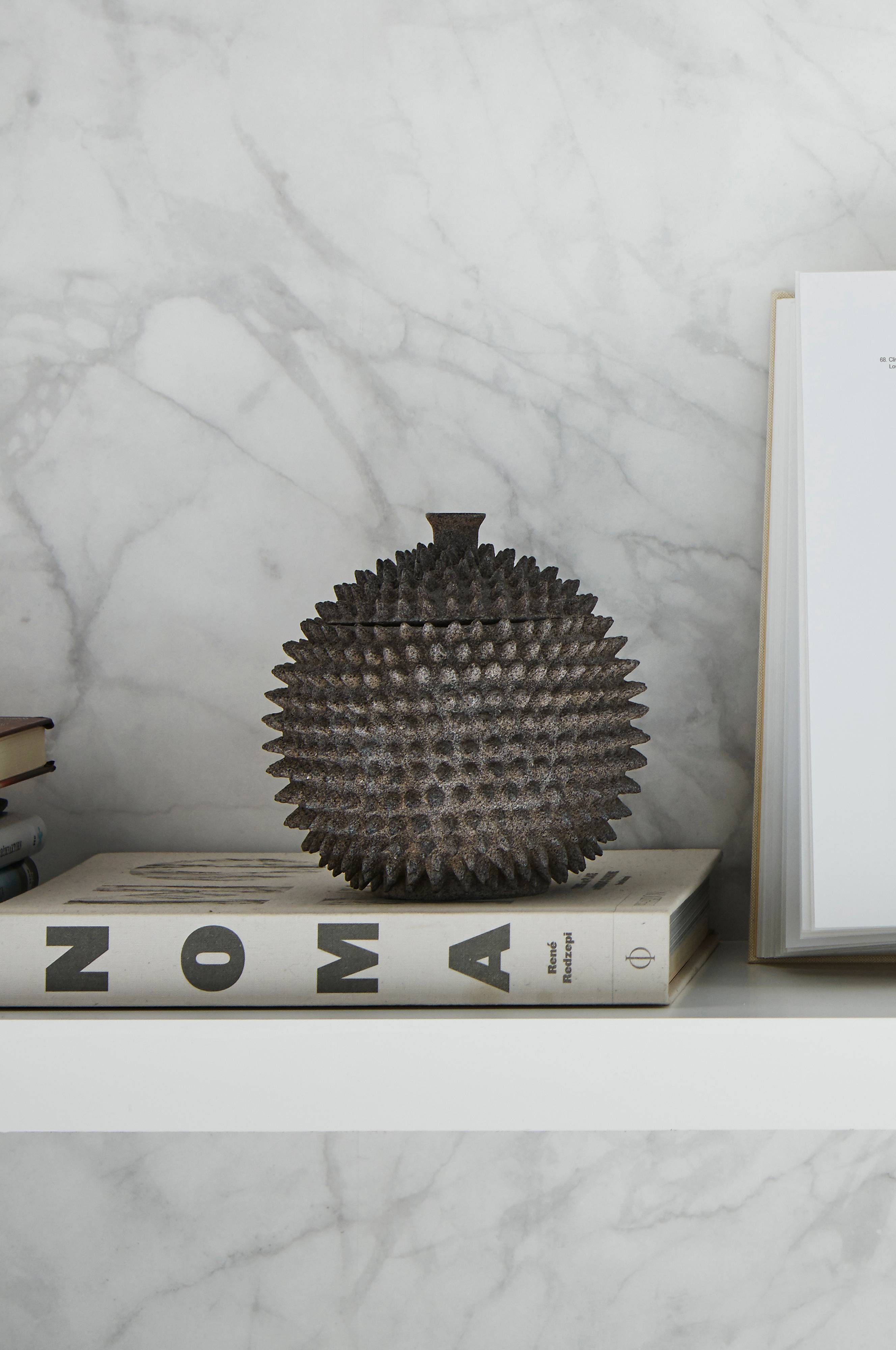 Opbevar dine ting i en krukke med pigge, det vil være en effektfuld detalje i din boligindretning. Den nysgerrige kan ikke holde sig væk. Den kornede overflade får krukken til at ligne en sten.