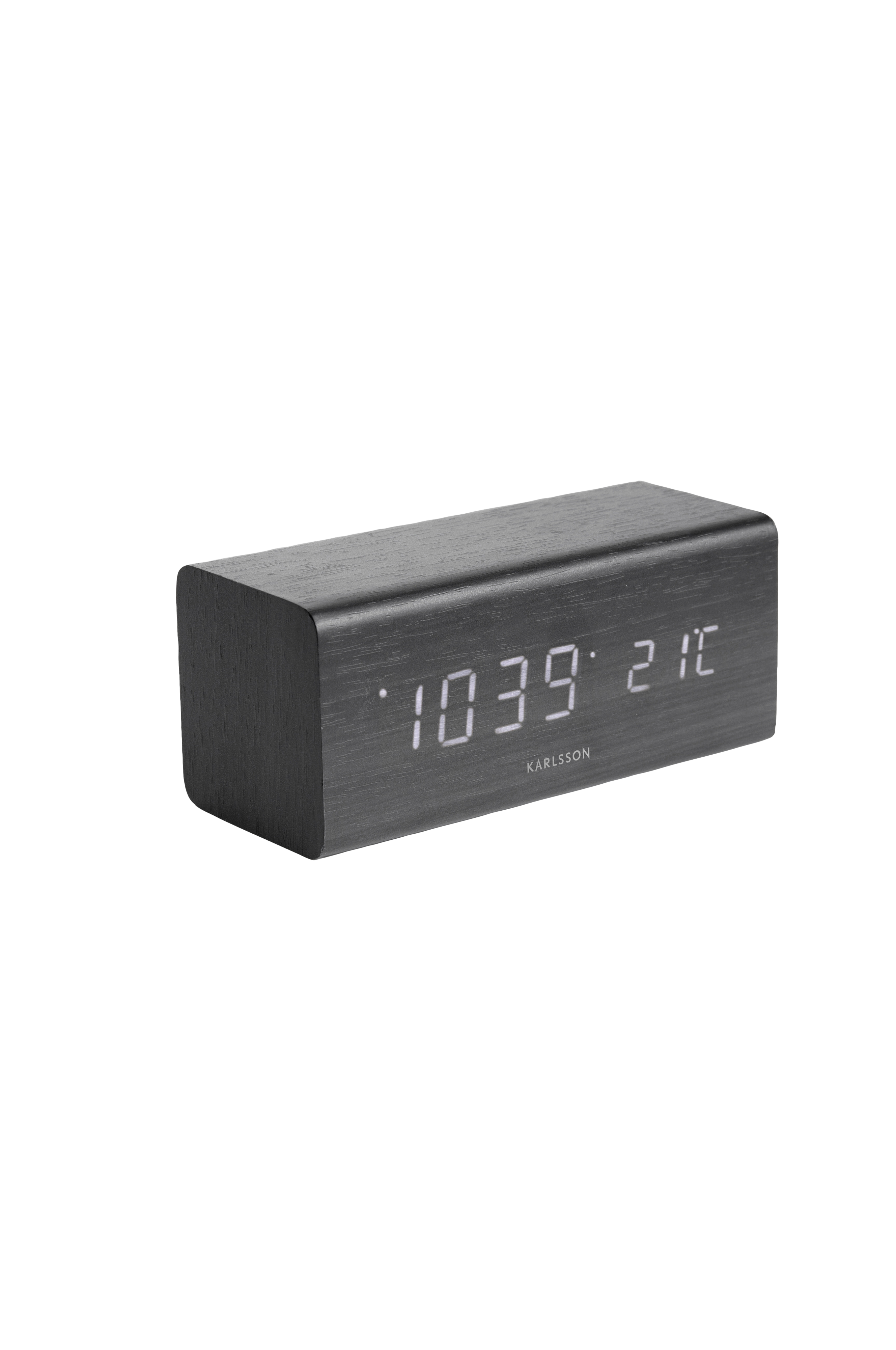 Karlsson vækkeur Block er lavet af finér med LED-indeks, fungerer med et USB-kabel der medfølger. Batteri kan anvendes som backup. Ekskl. 3 AAA-batterier. Uret viser dig tid, dato og temperatur og fungerer også som vækkeur. Du kan også vælge at vise klokkeslættet konstant eller gøre klokkeslættet synligt, når der trykkes på uret, eller der høres en lyd.